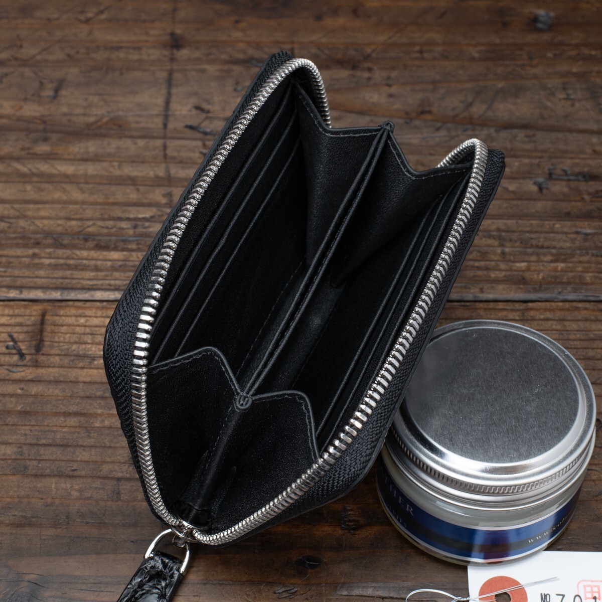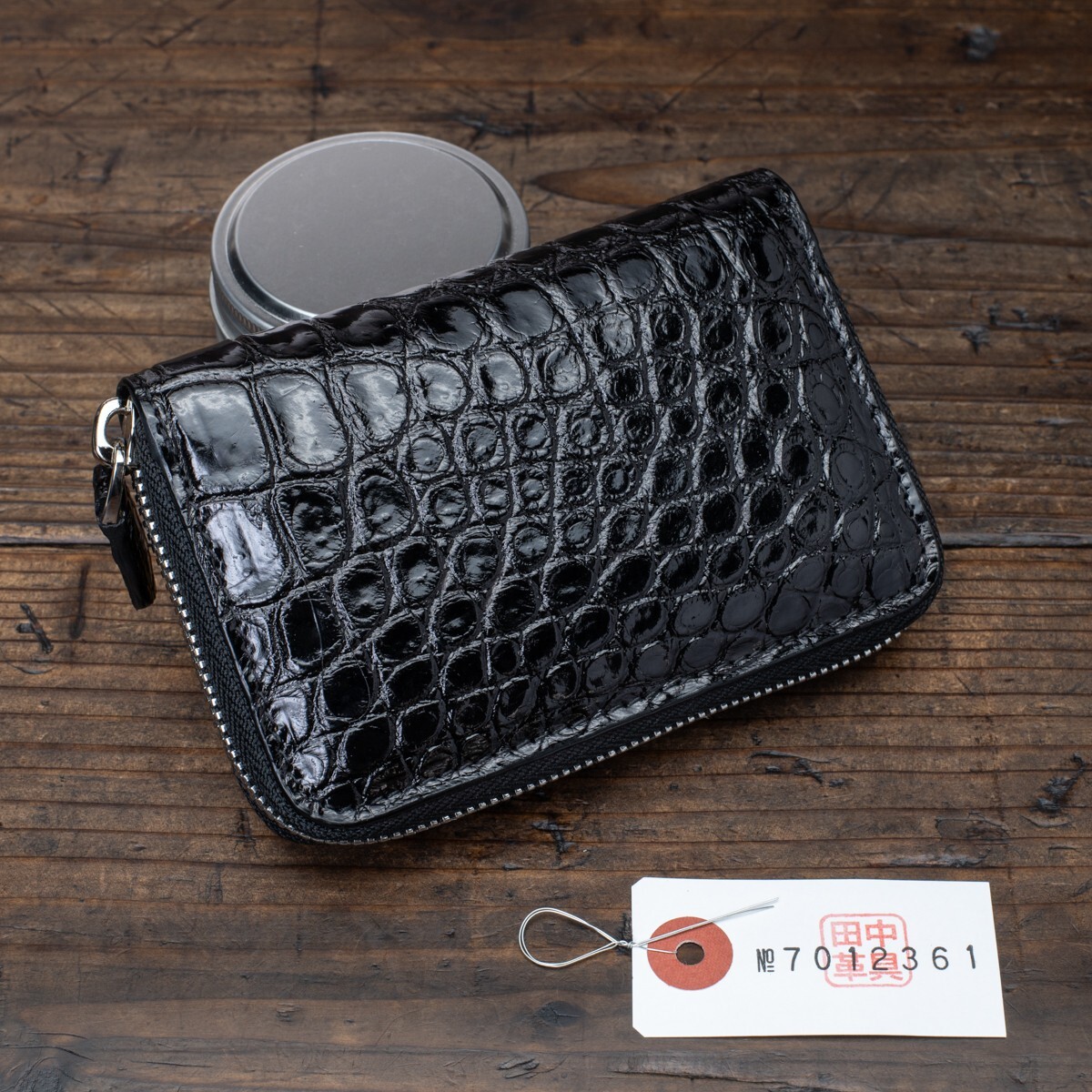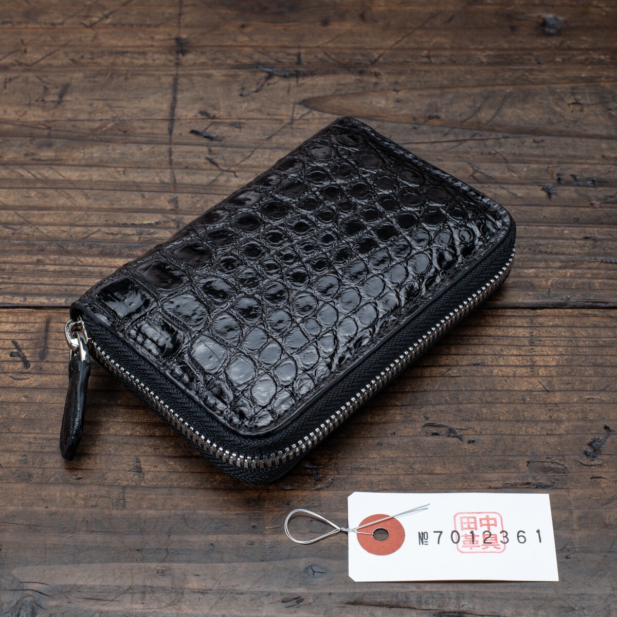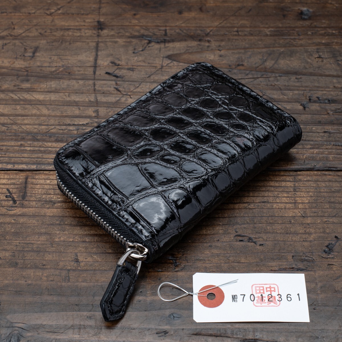 クロコダイル【一枚革】メンズ ラウンドファスナー わに 鰐 長財布 新品 未使用 送料無料 1円 黒 ブラック クロコミドル 実物撮影 田中革具