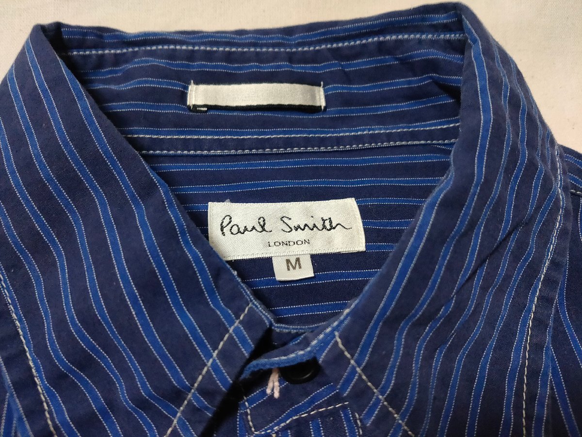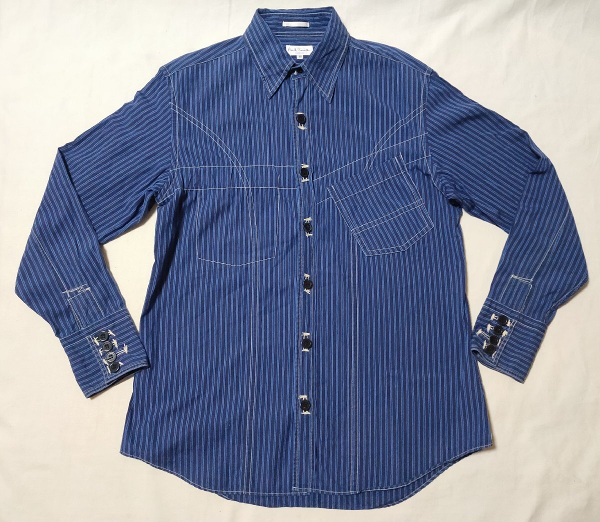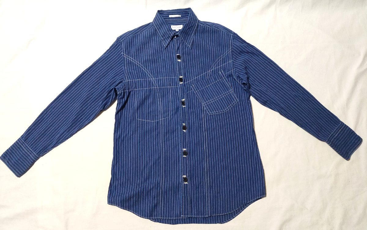 ★Paul Smith ポールスミス★ 長袖 ウエスタン風シャツ 変形デザイン サイズM ネイビー系 ストライプ 02927
