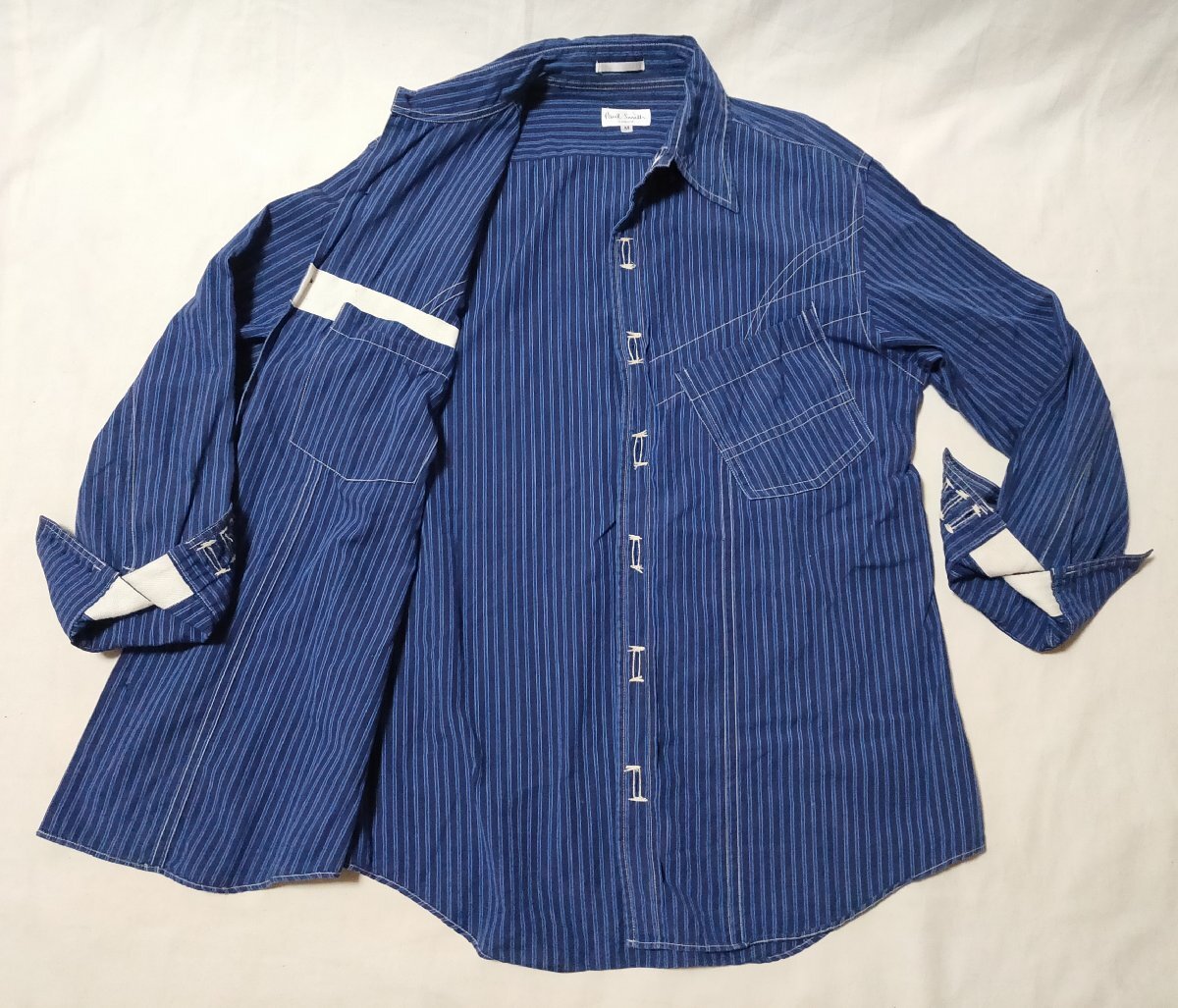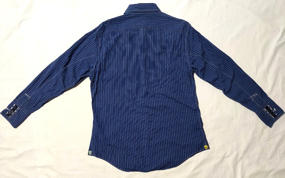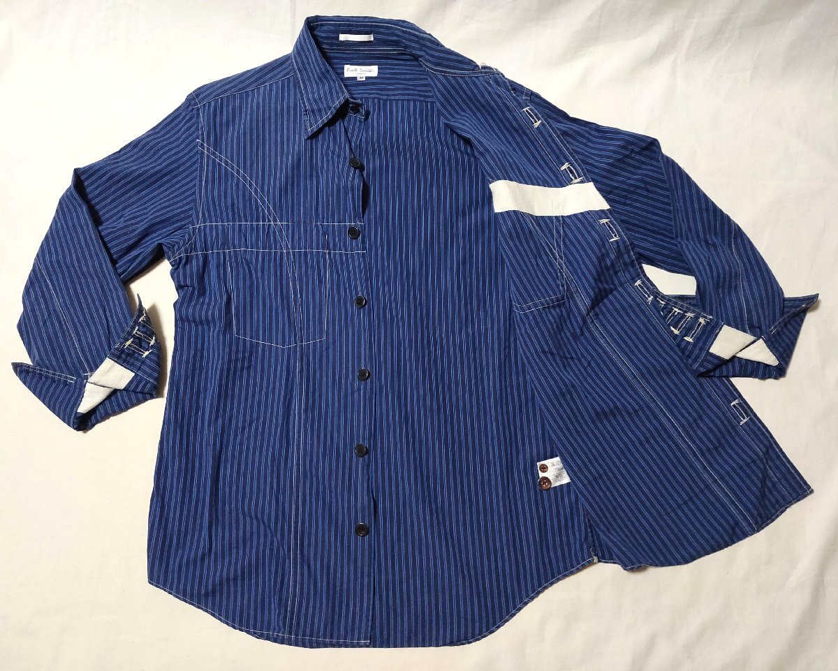 ★Paul Smith ポールスミス★ 長袖 ウエスタン風シャツ 変形デザイン サイズM ネイビー系 ストライプ 02927