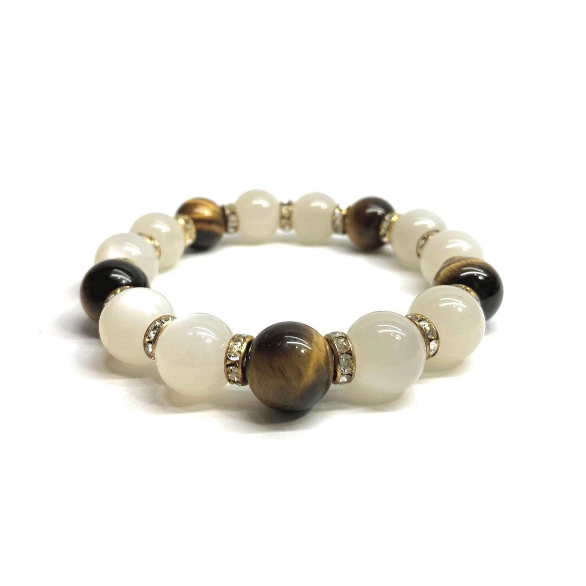 ムーンストーン&タイガーアイ パワーストーン ブレスレット 天然石ブレス (ゴールド) 12mm 幸運 開運 メンズ 男性♪