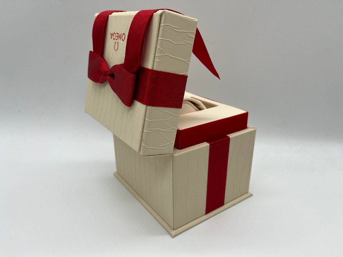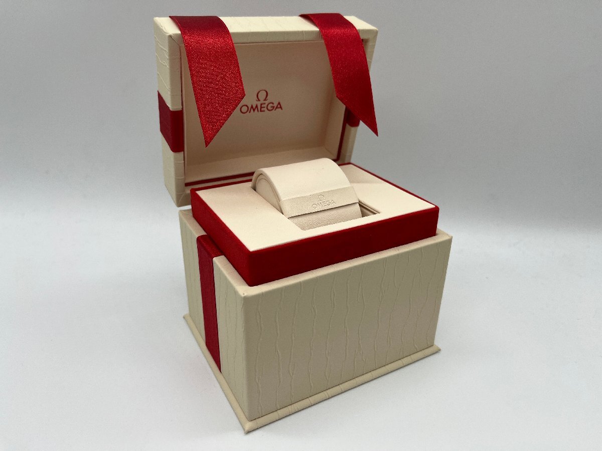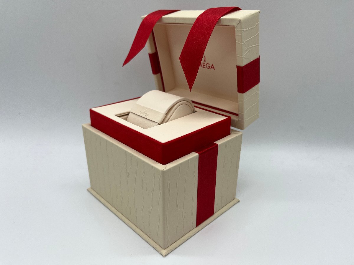 オメガらしい上品なレッドカラーと高級感のある質感で、コレクターの方や保管用として非常におすすめです。