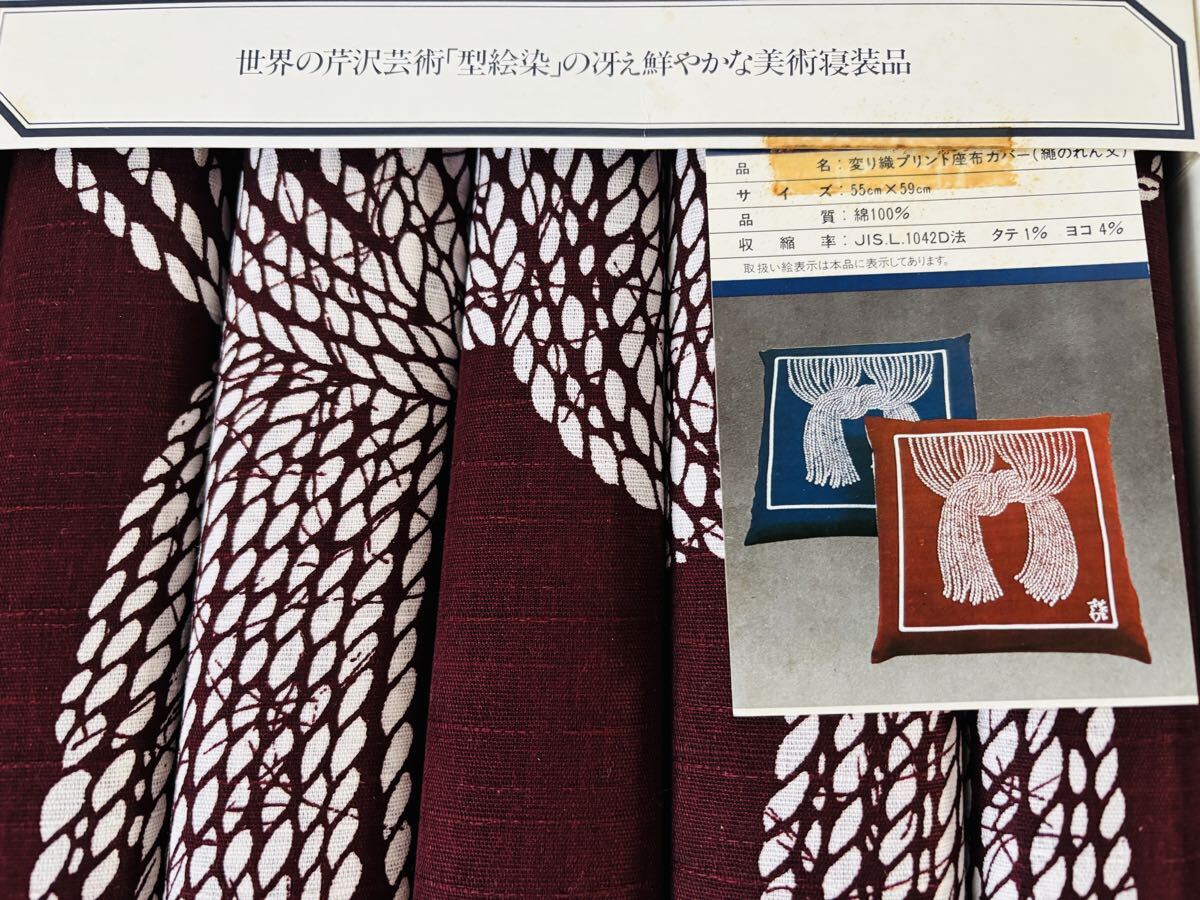 座布団カバー 人間国宝 芹沢銈介 芹沢銈介模様 昭和レトロ 綿100 サイズ55センチ59センチ えんじ色 5枚