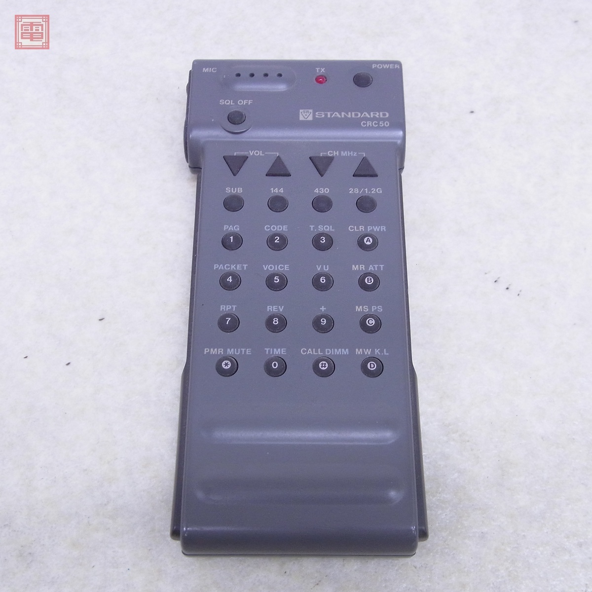 日本マランツ スタンダード CRC50 C50/C50D用リモコン STANDARD 詳細未確認 ■詳細未確認品として出品しておりますので、どの様な不具合が生じましても当店では交換・返金・返品等の対応はできません。 ■ご理解ご納得いただける方のみご入札をお願いいたします。 ■<出品物> ・リモコンのみ ■<状態> ・同時出品中のC50を使用し、リモコン側の電源ボタン、バンド切り替えボタン、テンキー等が反応することを確認しました。 ・しかし、無線機側が送受信不可の品であったため上記以外の詳細な確認は行っておりません。 ・中古品の為キズ、汚れ等はご容赦ください。 ■写真のものが全てです。付属物の有無や状態については写真からご判断ください。 ■付属物については細かいチェックはしておりませんので、万が一、欠品があったり余計な物が入っていたとしてもご了承ください。 ■商品到着後、当店の保証期間中は、商品及び箱や取説、付属品などを1つでも廃棄や破損をしないようにお願い致します。廃棄や破損をした場合、商品に問題があった場合でも対応や返金などの対処ができなくなります。 ■商品によりますが、発売されてから10年以上経過している中古品である事をご理解頂いた上でご入札をお願い致します。なお、新品や美品、また特記事項がある場合は別途明記します。 | |||