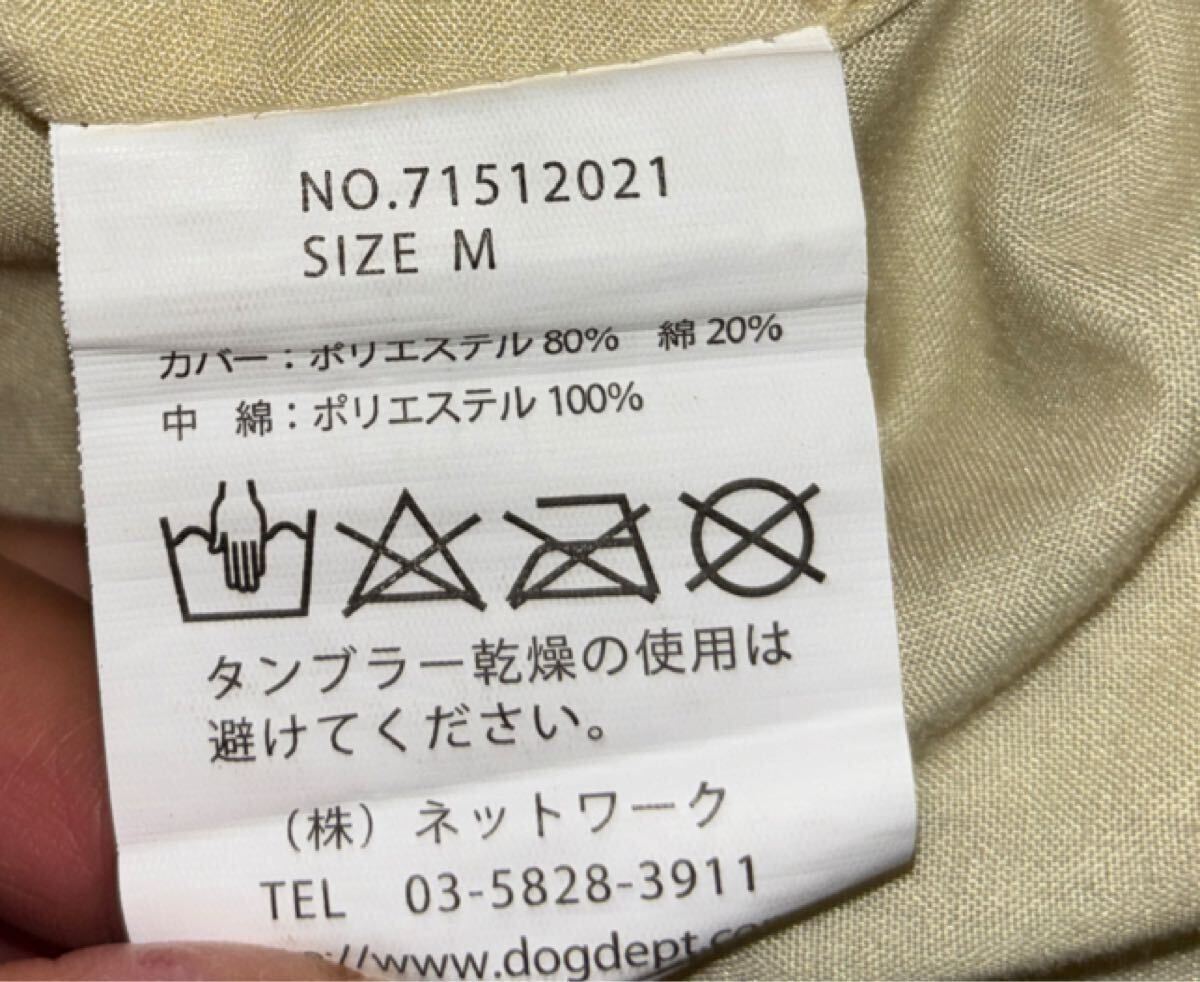 素材:ポリエステル80% 綿20% 中綿ポリエステル100%