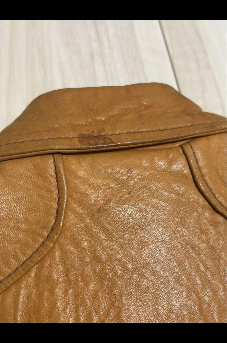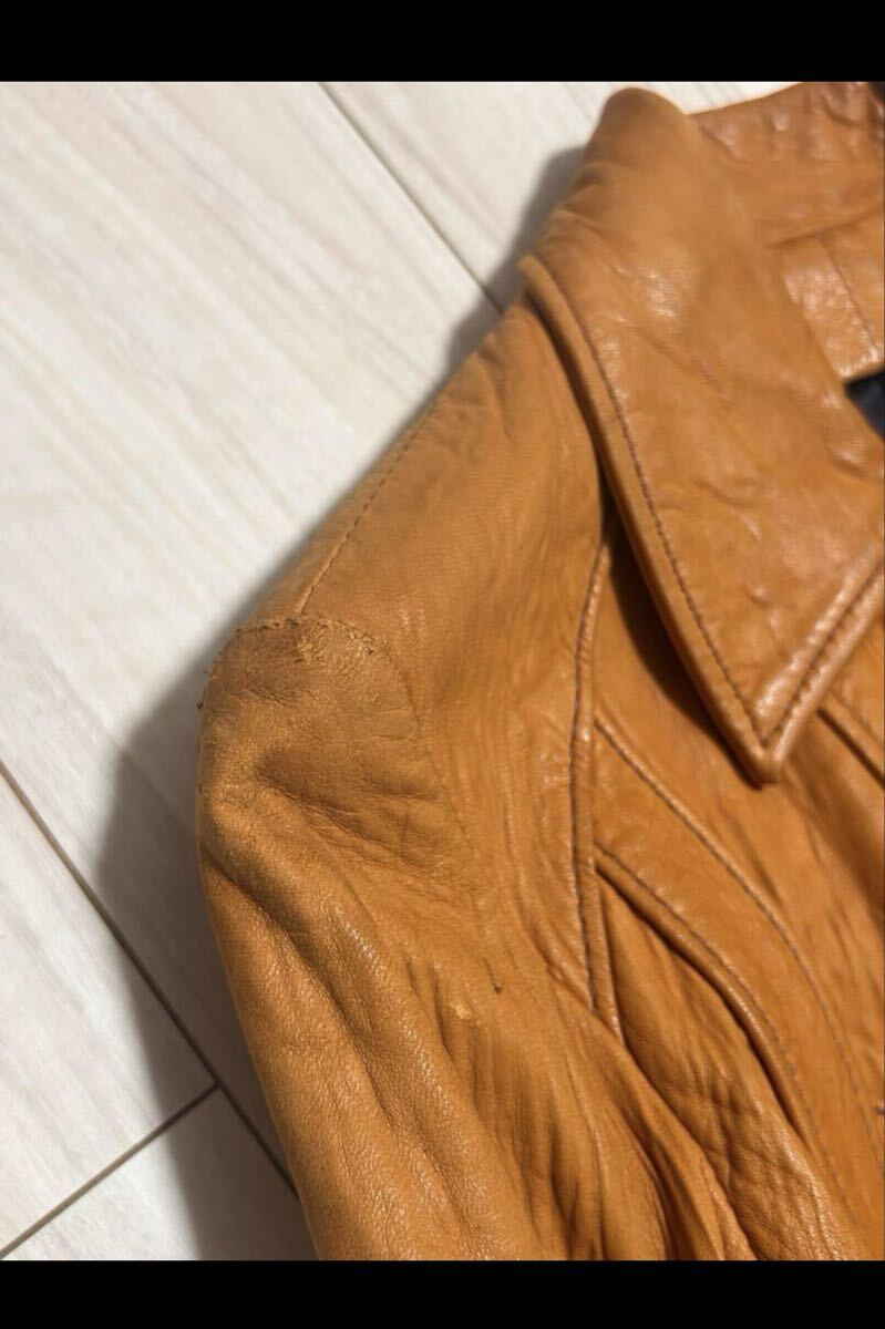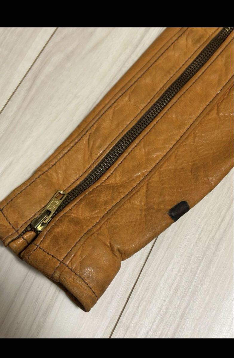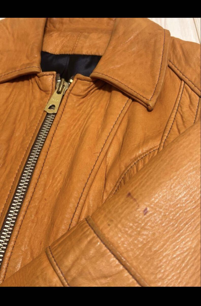 右肩のスレ、左袖に靴墨?の跡がみられます。それ以外に目立ったダメージはなく、50年近く前のレザージャケットとしてはかなり良い状態を保っていると思います。