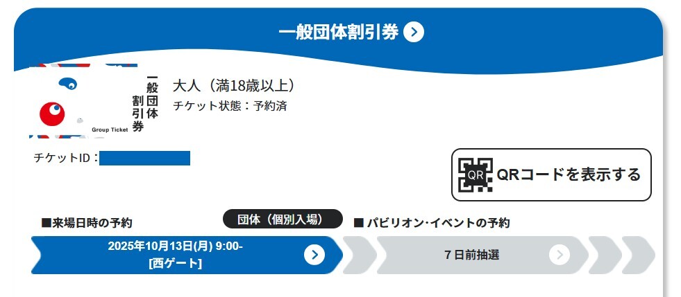 ※一般団体割引券(入場日時確約券)の為来場日変更は不可です。