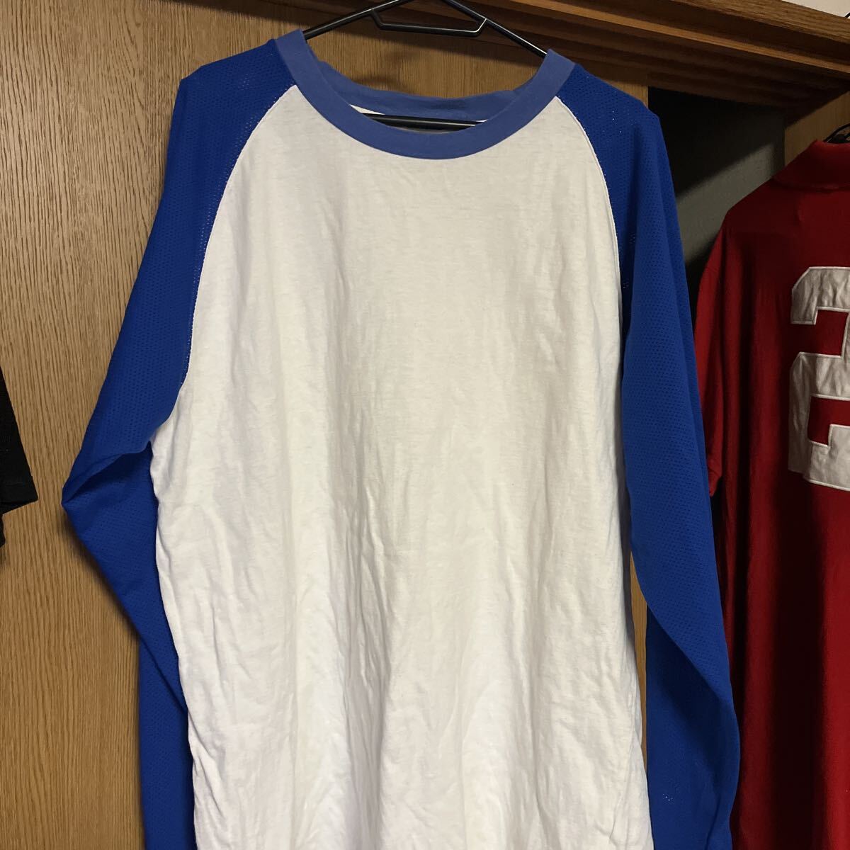 GOODENOUGHの袖メッシュラグランロングスリーブTシャツです。袖部分にGOODENOUGH2001のプリントがあることから2001年の物と思います。