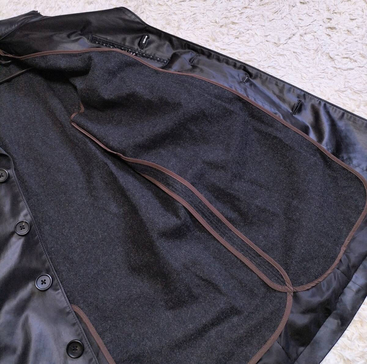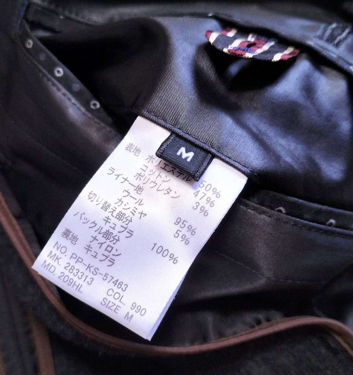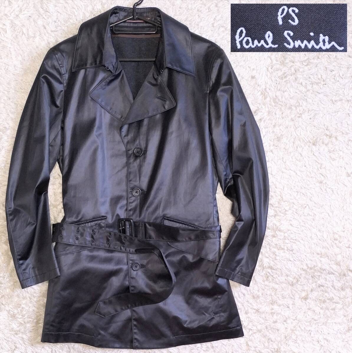【カシミヤ混ライナー付き★】Mサイズ PS Paul Smith ストレッチ シングル トレンチコート 黒●サテンライクな生地感☆ポールスミス (10ハ)