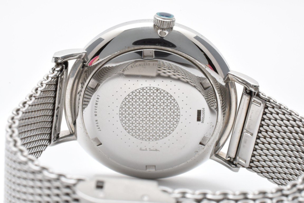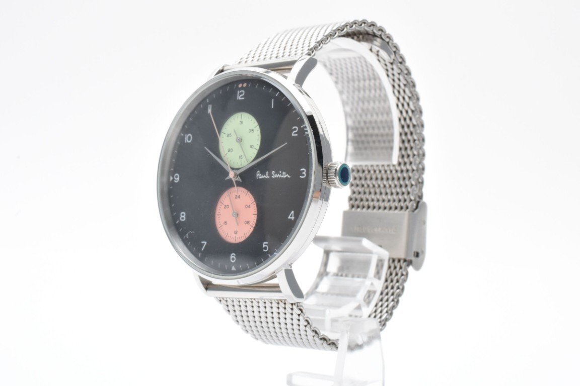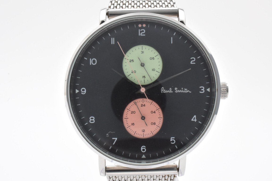 PAUL SMITH ポールスミス 腕時計 メンズ クォーツ式 ラウンド クロノグラフ シルバー ブラック文字盤 ピンク 黄緑 電池式