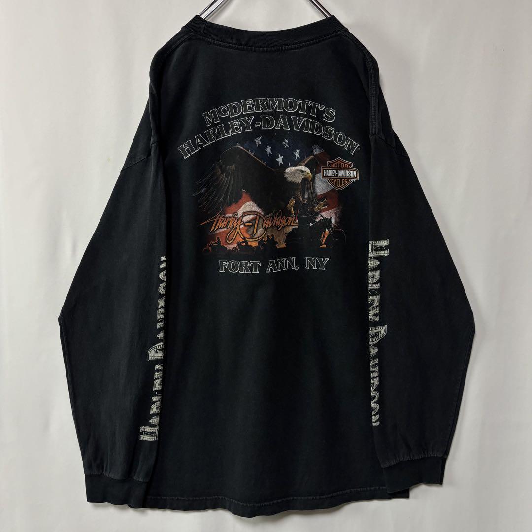 フロントはハーレーのデザインプリント、バックプリントには鷲と定番ロゴプリント。
