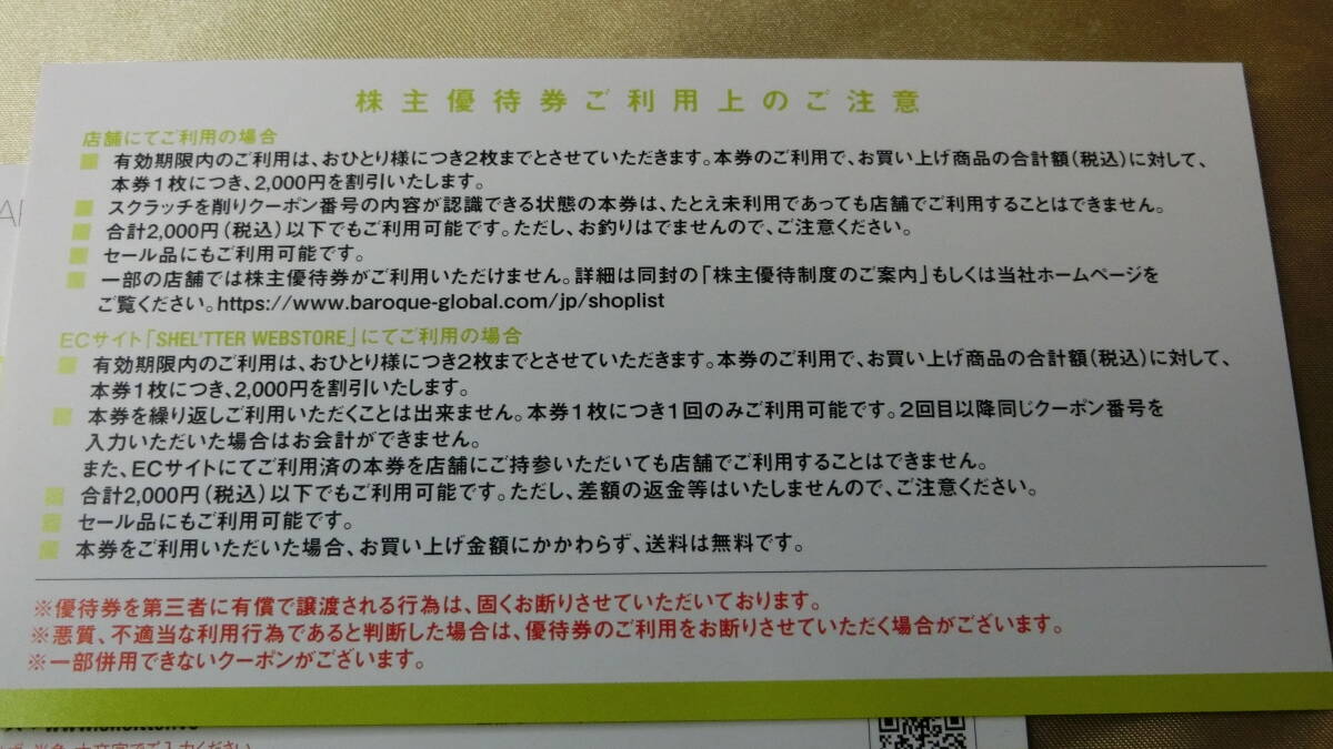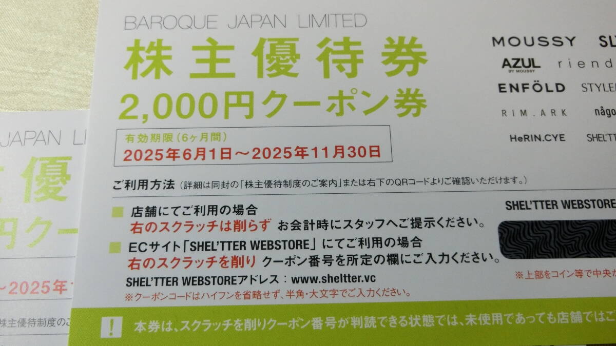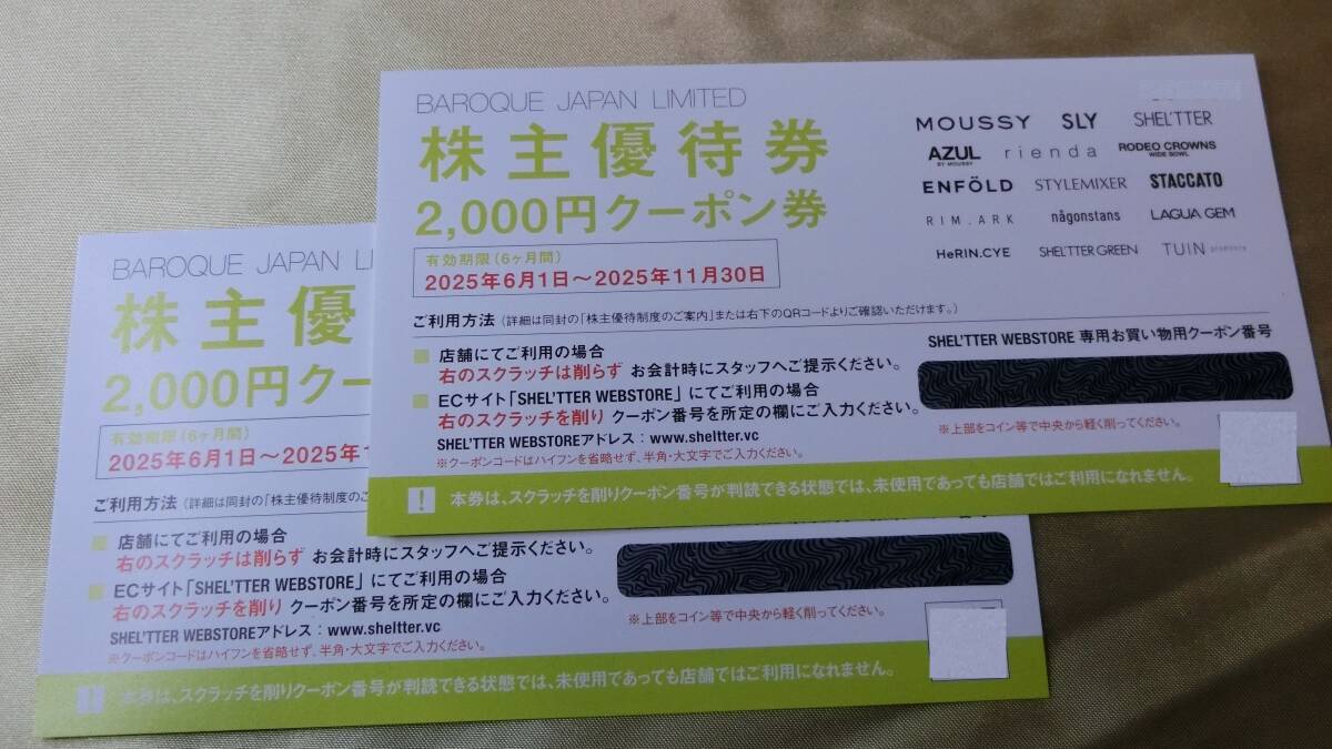 2b■株主優待 バロックジャパンリミテッド 4000円分(2000円*2枚) ★連絡のみで送料無料 ミニレター85円も対応可