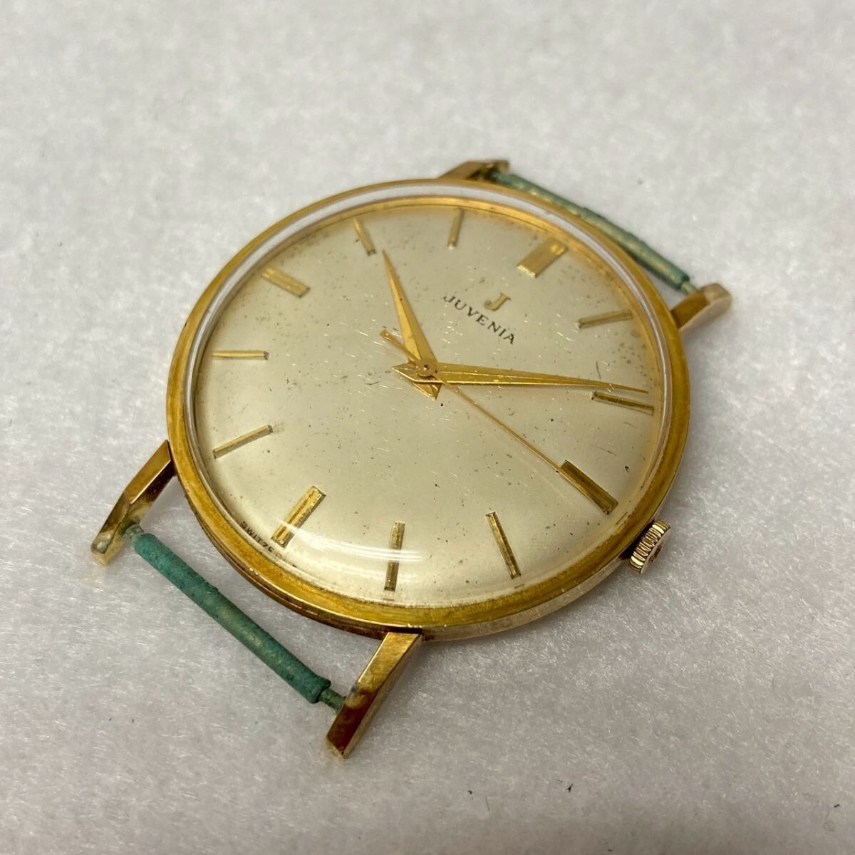 取り扱っている商品は未使用・未開封も含め、全て一度は人の手に渡った一点ものの中古・ジャンク扱いでの商品です。 当方素人ですので肉眼で確認できる簡易的な検品、採寸、および簡易梱包となります。 ※稼働の記載につきましては秒針等の確認のみとなり、全体の動作を保証するものではございません。 また、出品時の中古品の動作状況となりますので、予めご了承の上でご入札ください。 不動の表記につきましてはクォーツ式のムーブメントの場合、動作未確認の状態となります。 電池交換後、不具合があった場合でも返金、返品の対象とはなりませんので、予めご了承くださいますようお願い致します。 細かな日差、オーバーホール状況、社外パーツの使用に関しては保証しかねますので、ご理解いただけた上でのご入札をお願い致します。 上記を踏まえた上で中古品、ジャンク商品として出品させていただいておりますので、全てご理解いただけた上でのご入札をお願いいたします ------------------------------------------------------------------------------------------------ 【サイズ】 直径約3.5cm 腕回り約-cm 【付属品】 【稼働状態】 現在稼動 【その他状態】 サビあり フェイスのみ 現状品 ----------------------------------------------------------------------------------------------- 画像にあるものが全てです。 他詳細は画像にてご判断ください。 ※目立つ傷や汚れを中心に写真を撮っておりますが、画像に写りきっていない傷等がある場合もございます。予めご了承ください。 ※商品を多数出品している関係で、稀に商品説明や画像に誤りがある場合がございます。予めご了承ください。 こちらのページをご覧いただく際は、商品説明文と掲載している画像の全てを確認いただいた上でご入札ください。 | |||||||