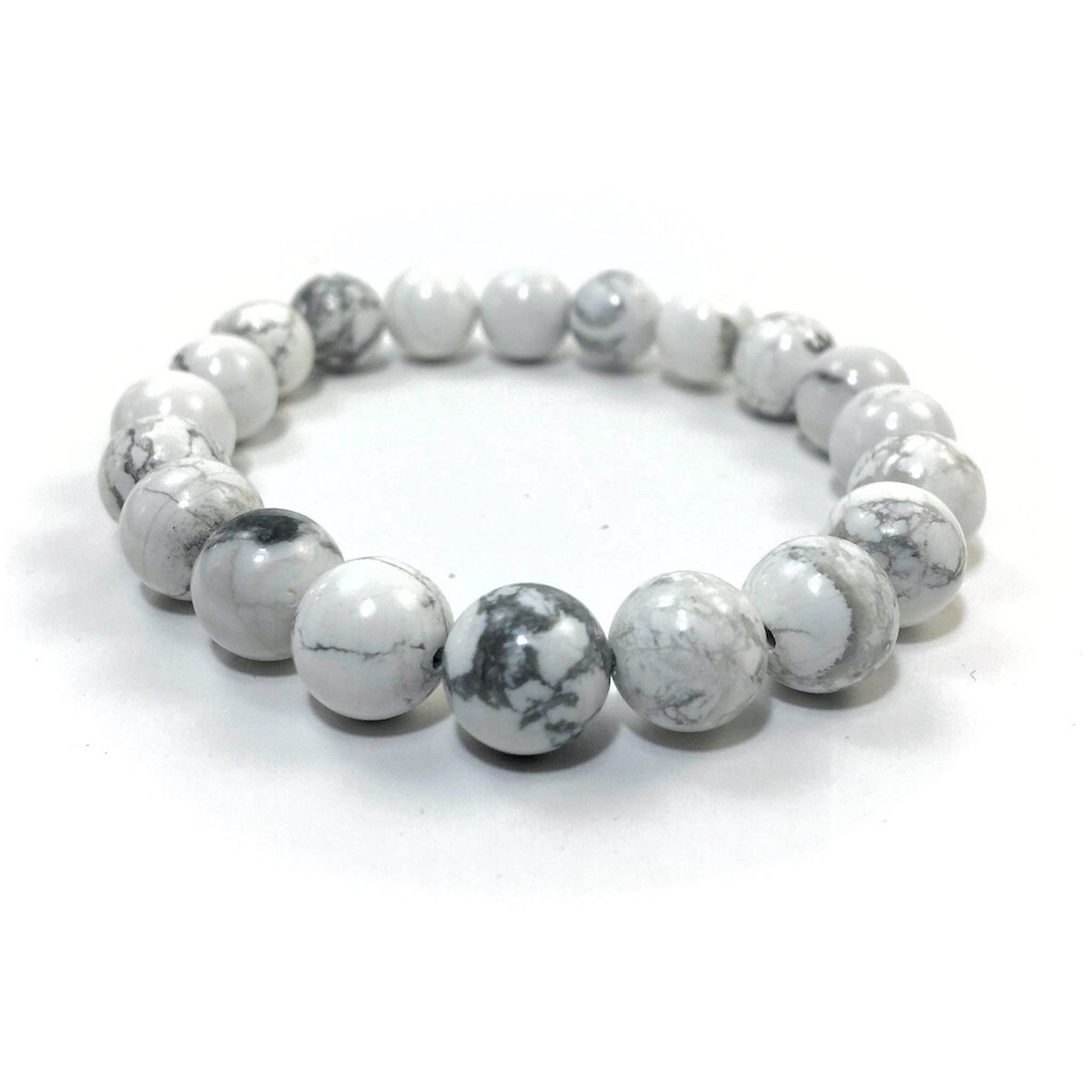 こちらは、ハウライトの10mm玉を使用したパワーストーンブレスレットです。シンプルなデザインですのでどんなコーディネートとも合わせ易いブレスレットです。サイズは内径約17cmです。(サイズ変更の場合は取引ナビにてご連絡をお願いします。) 数に限りがございますので気になる方はお早めにどうぞ。