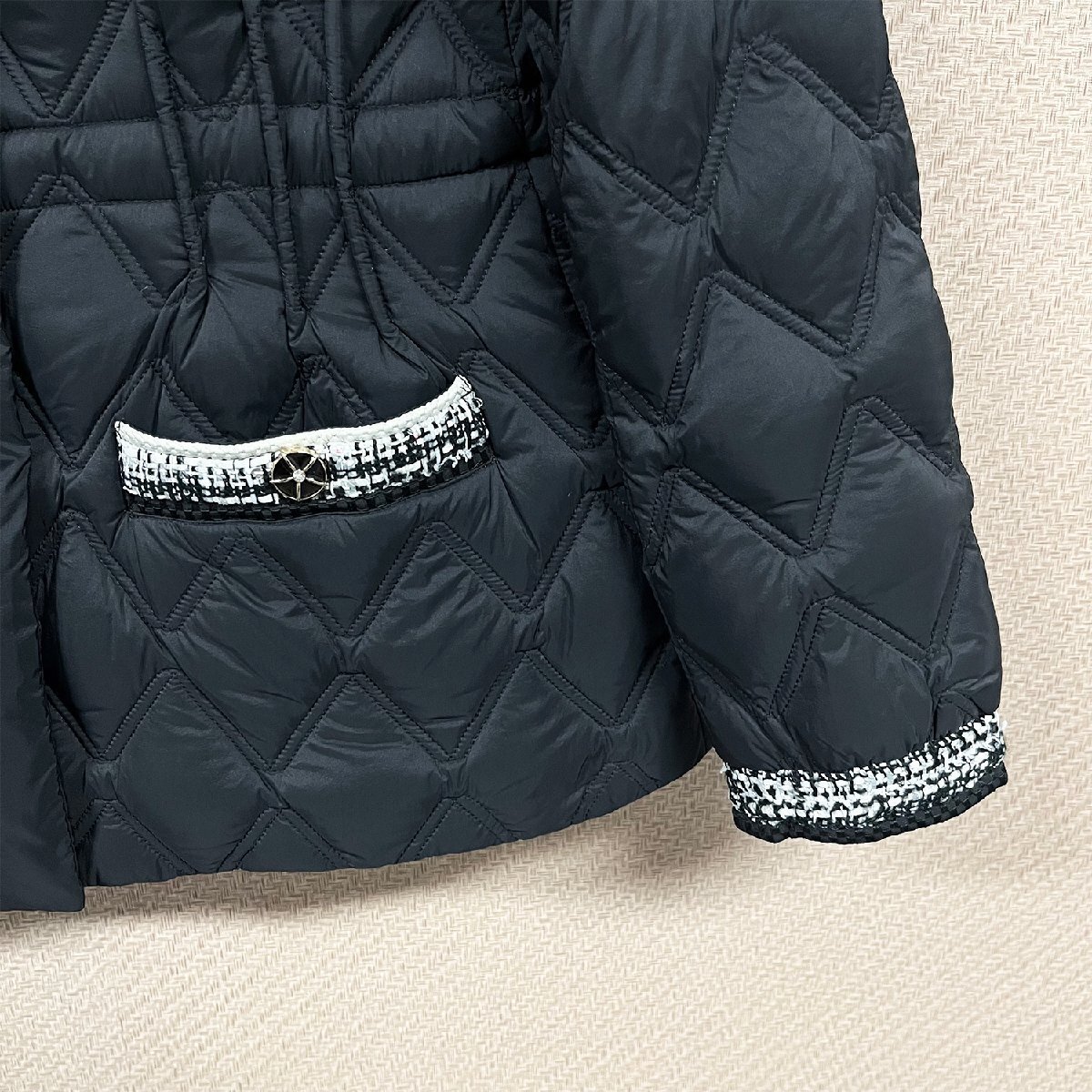 袖口・胸元・ポケット部分の切り替えデザインがアクセントとなり、シンプルな中にも洗練された印象をプラス。首元をしっかりと包み込むハイネック仕様で、防風性アップ。ウエスト部分の内蔵ドローストリングにより、好みのフィット感に調整可能。引き締まったウエストラインが美しく、シンプルながらもスタイリッシュな印象を与えます。両脇にポケットが付いています、寒い時ポケットに手を入れて暖かくなる、ポーズが欲しい時に入れてもよいのです。
