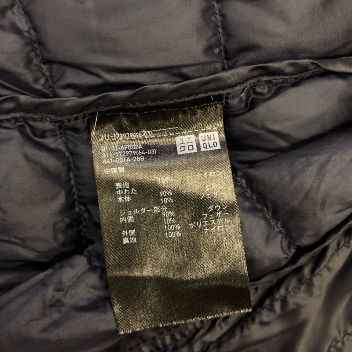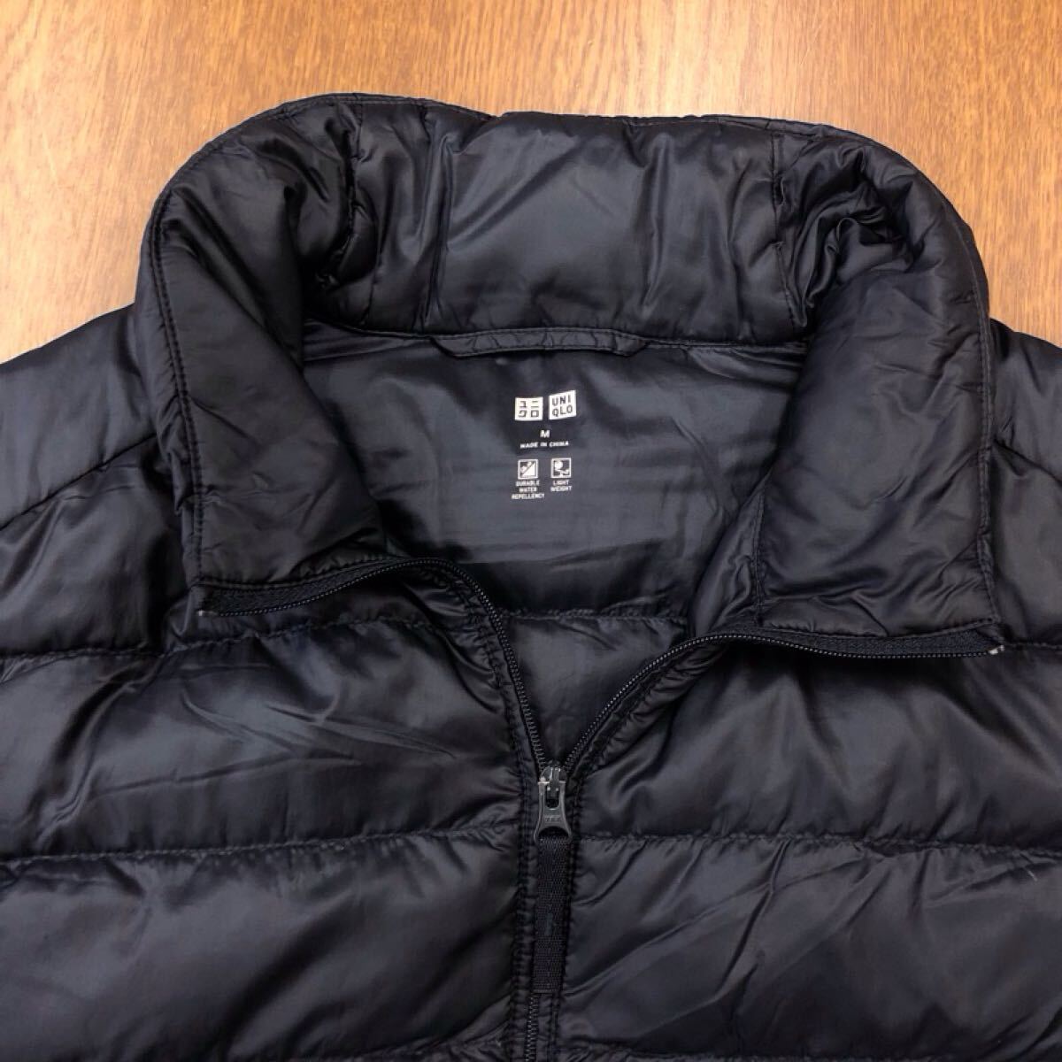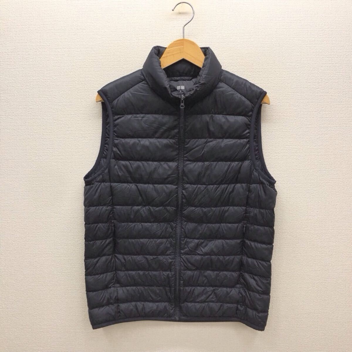 【め060】UNIQLO ライトダウンベスト Mサイズ ネイビー スタンドカラー 耐久撥水加工 ポケットジップ メンズブランド古着 ユニクロ送料無料