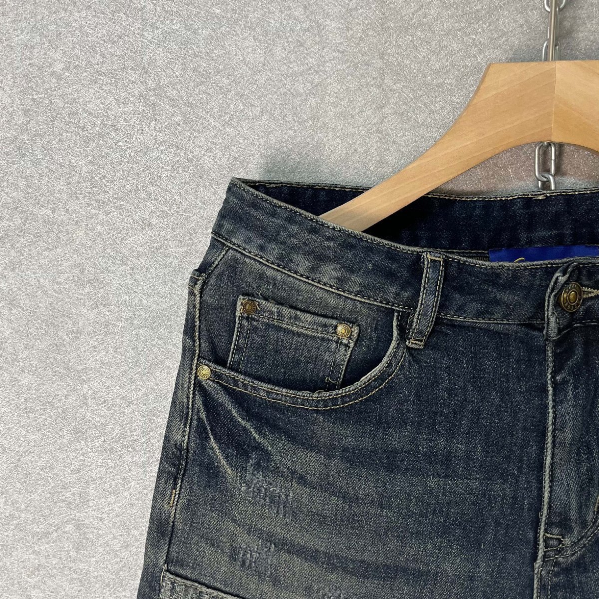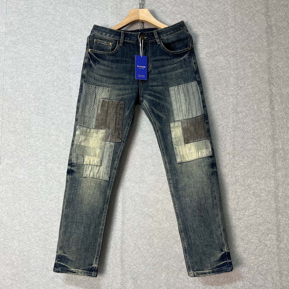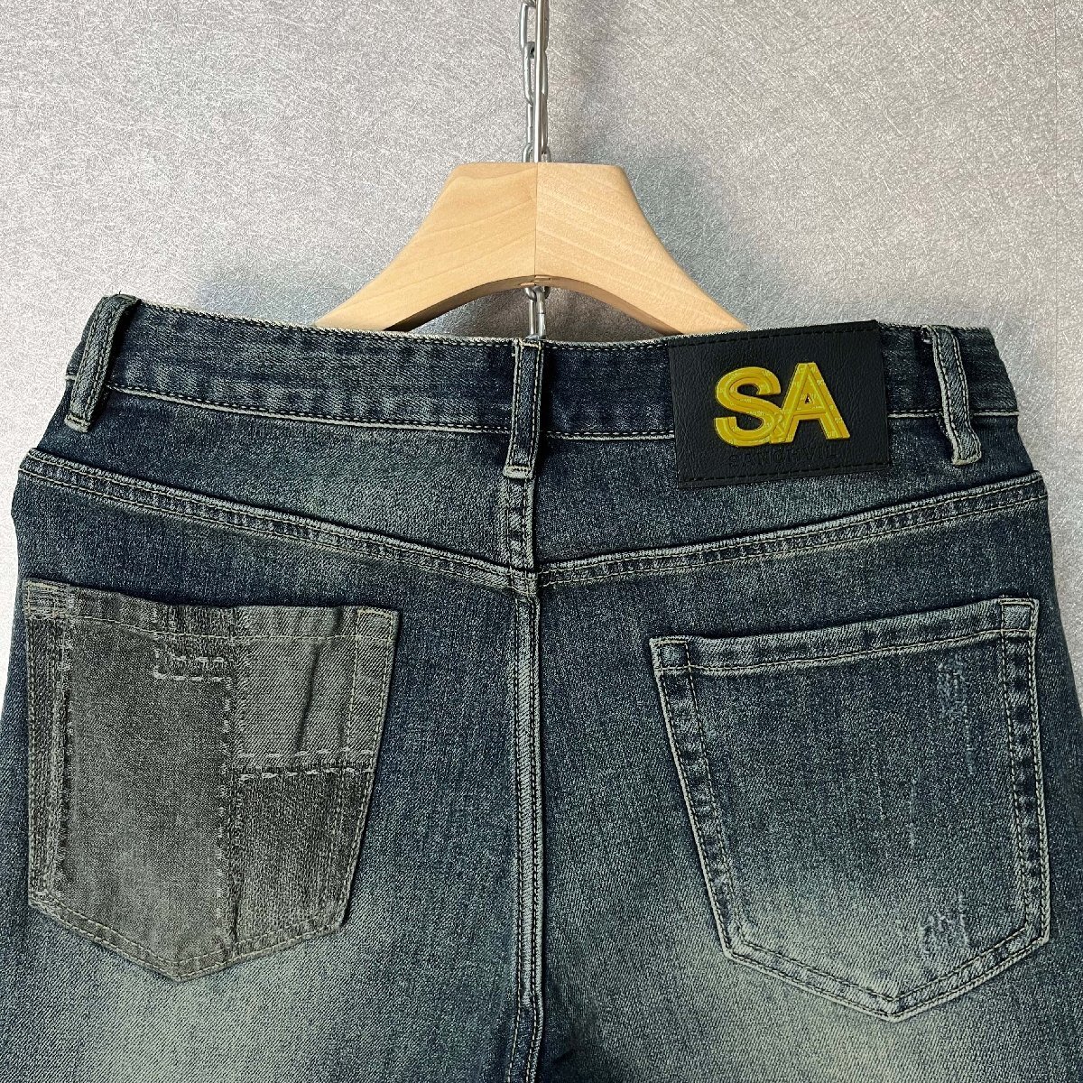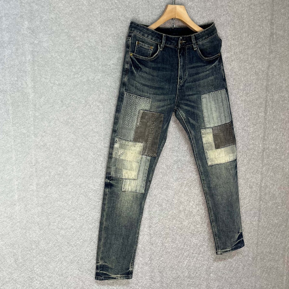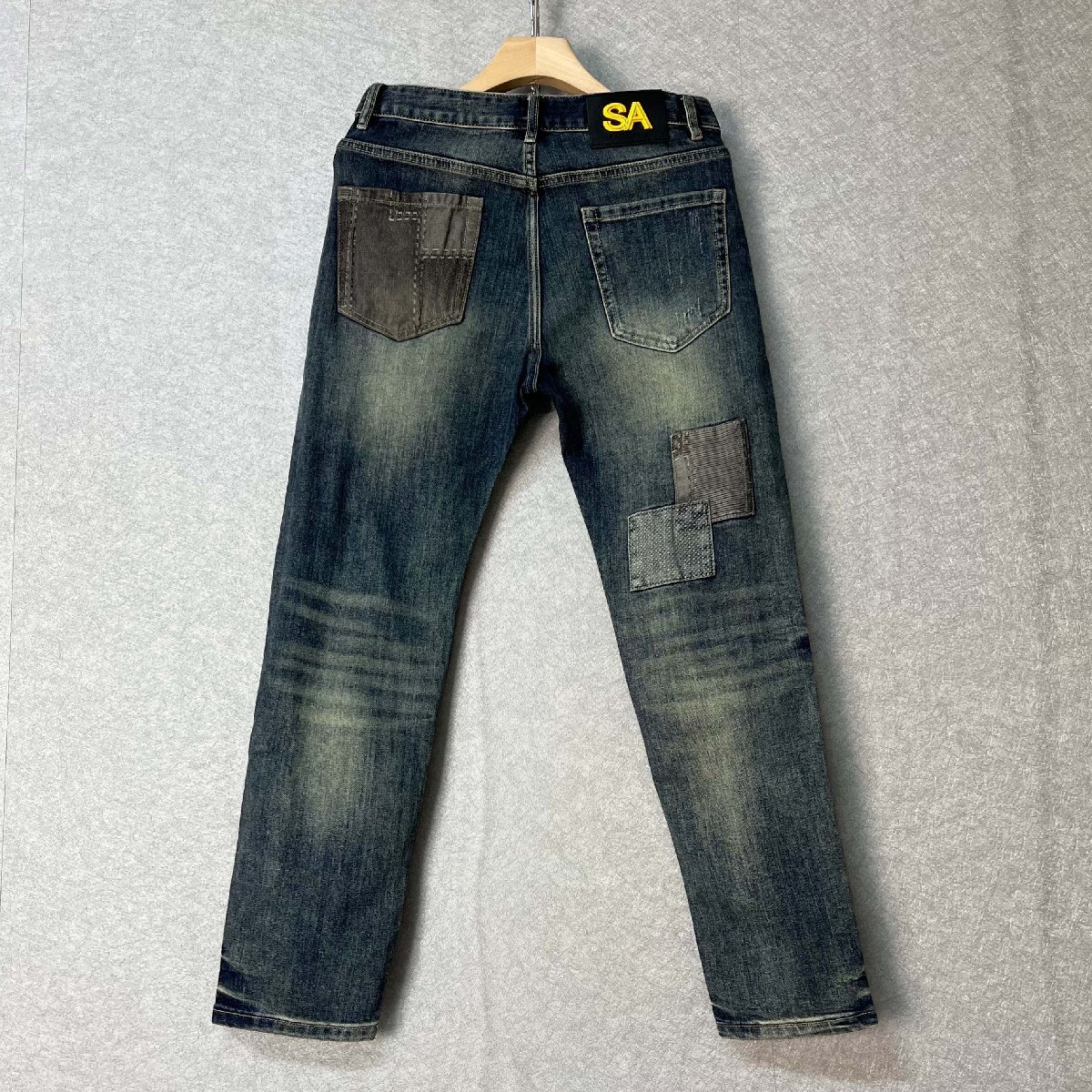 個性・デニムパンツ 定価4万◆Emmauela・イタリア・ミラノ発◆コットン混 快適 パッチワーク 色落ち ジーンズ オシャレ ズボン サイズ31