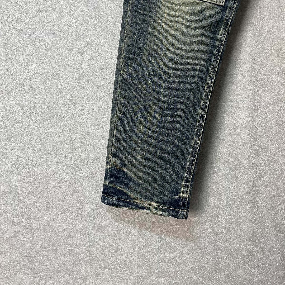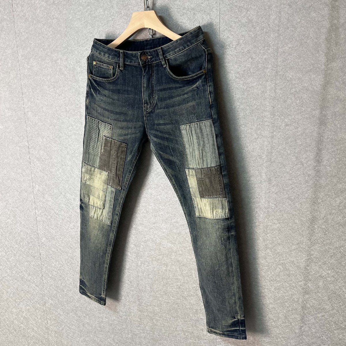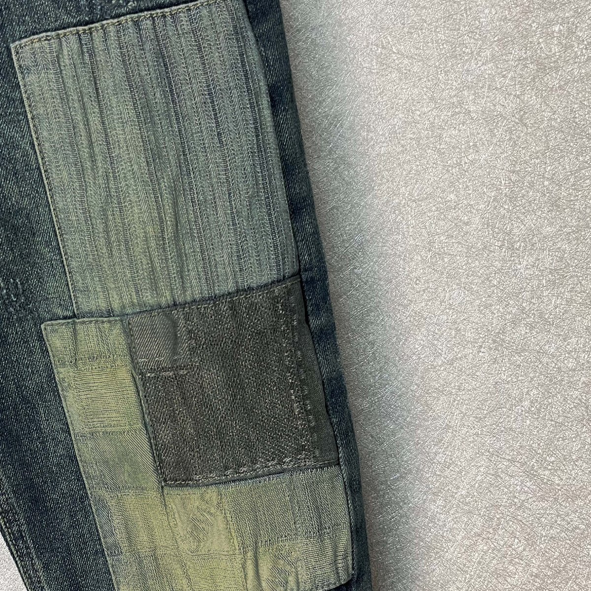 色落ちやパッチワークがユーズド感を演出して、ヴィンテージ風合いに優れております。シンプルなストレートデザインで、ジャストなフィット感が楽しめます。前後にポケットが付き、実用性を高め、小物を収納するのに便利。
