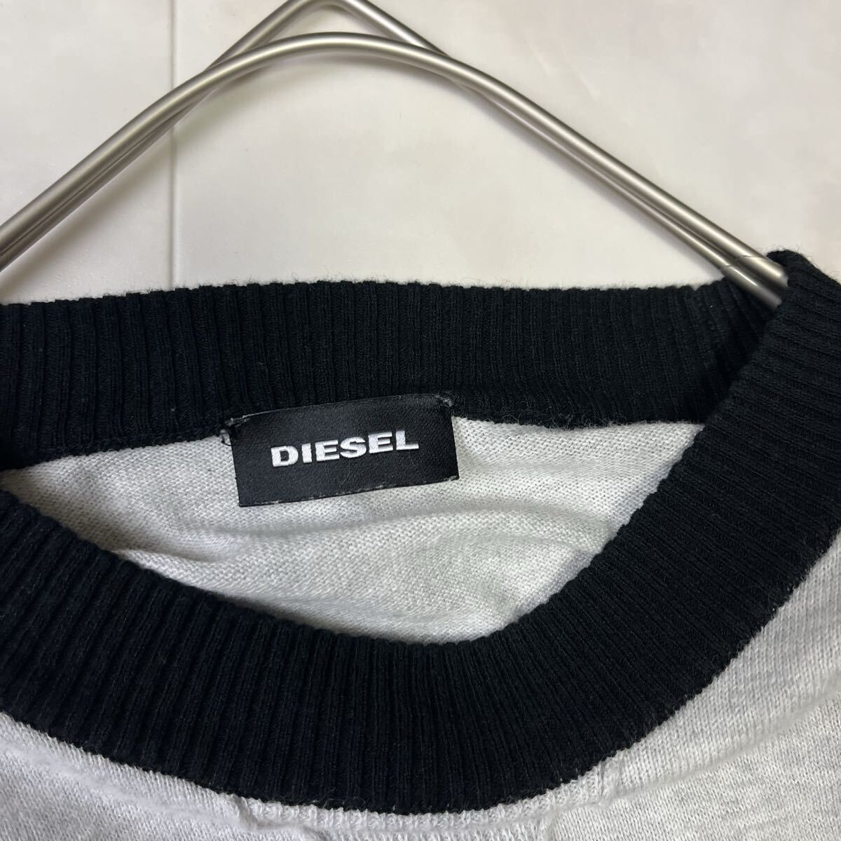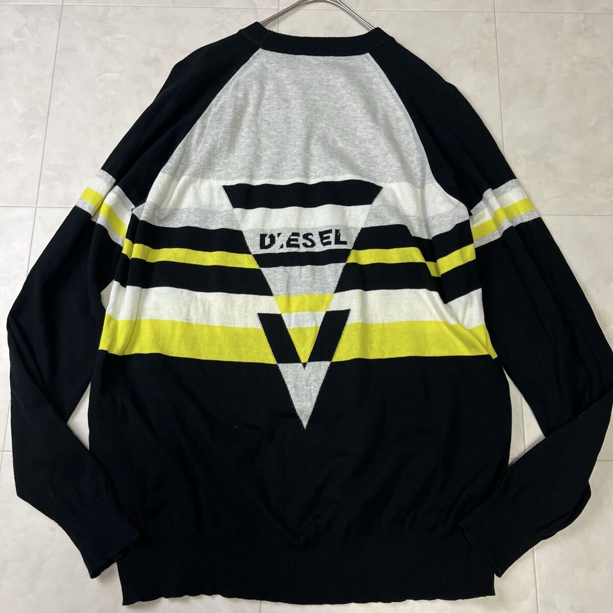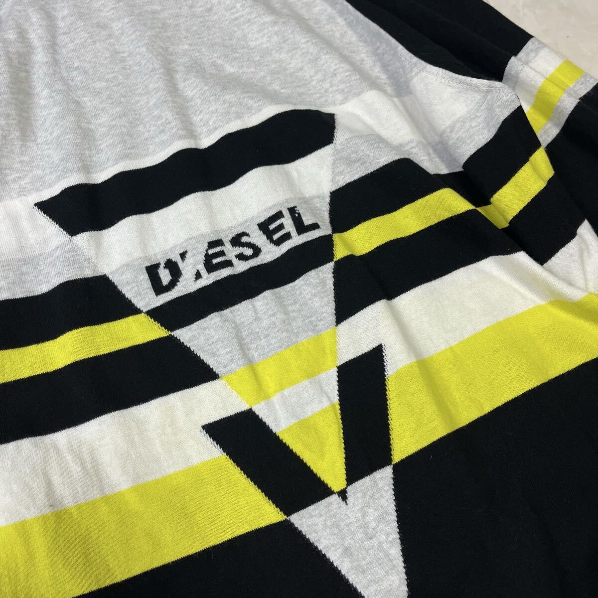イタリア製の高品質なコットンニット。幾何学ラインが印象的なDIESEL(ディーゼル)のデザインセーターです。程よい肉厚感でロングシーズン着用可能。上品な配色が都会的な印象を与えます。