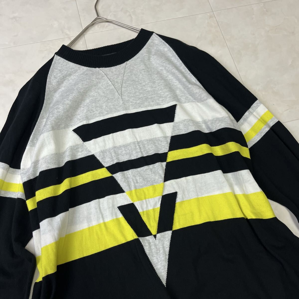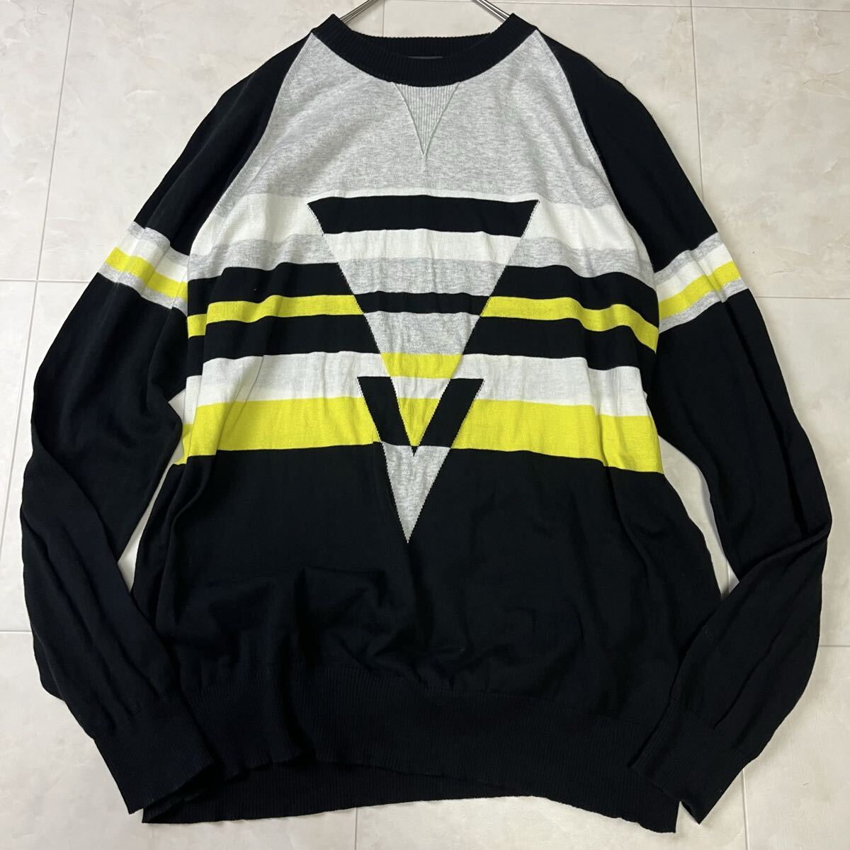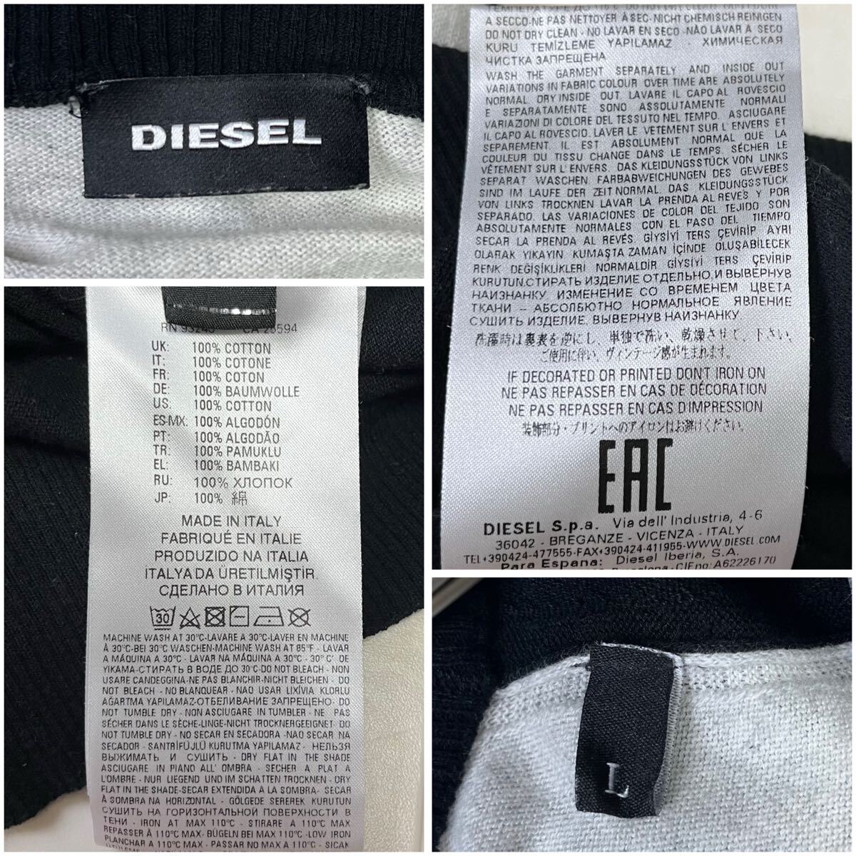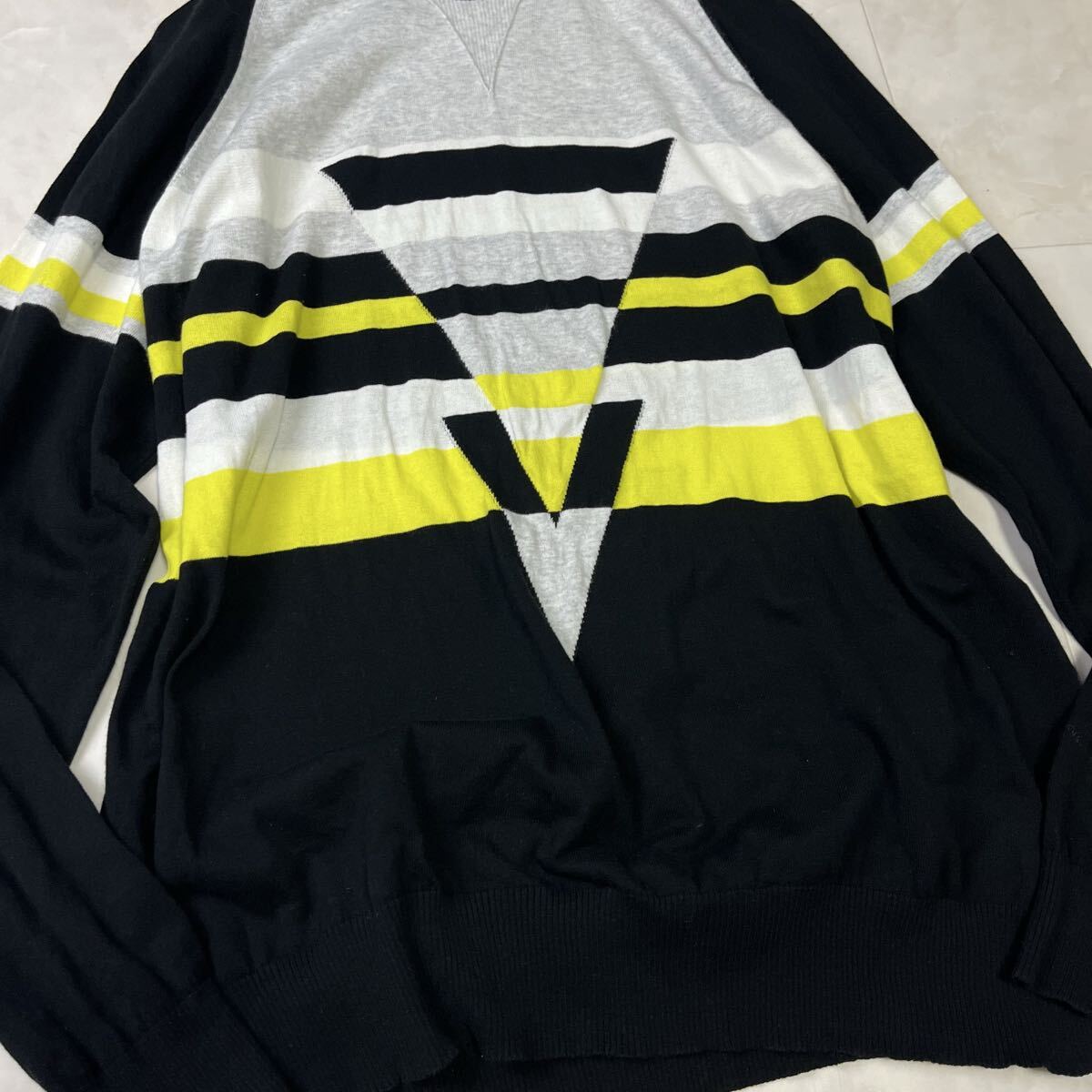 イタリア製の高品質なコットンニット。幾何学ラインが印象的なDIESEL(ディーゼル)のデザインセーターです。程よい肉厚感でロングシーズン着用可能。上品な配色が都会的な印象を与えます。