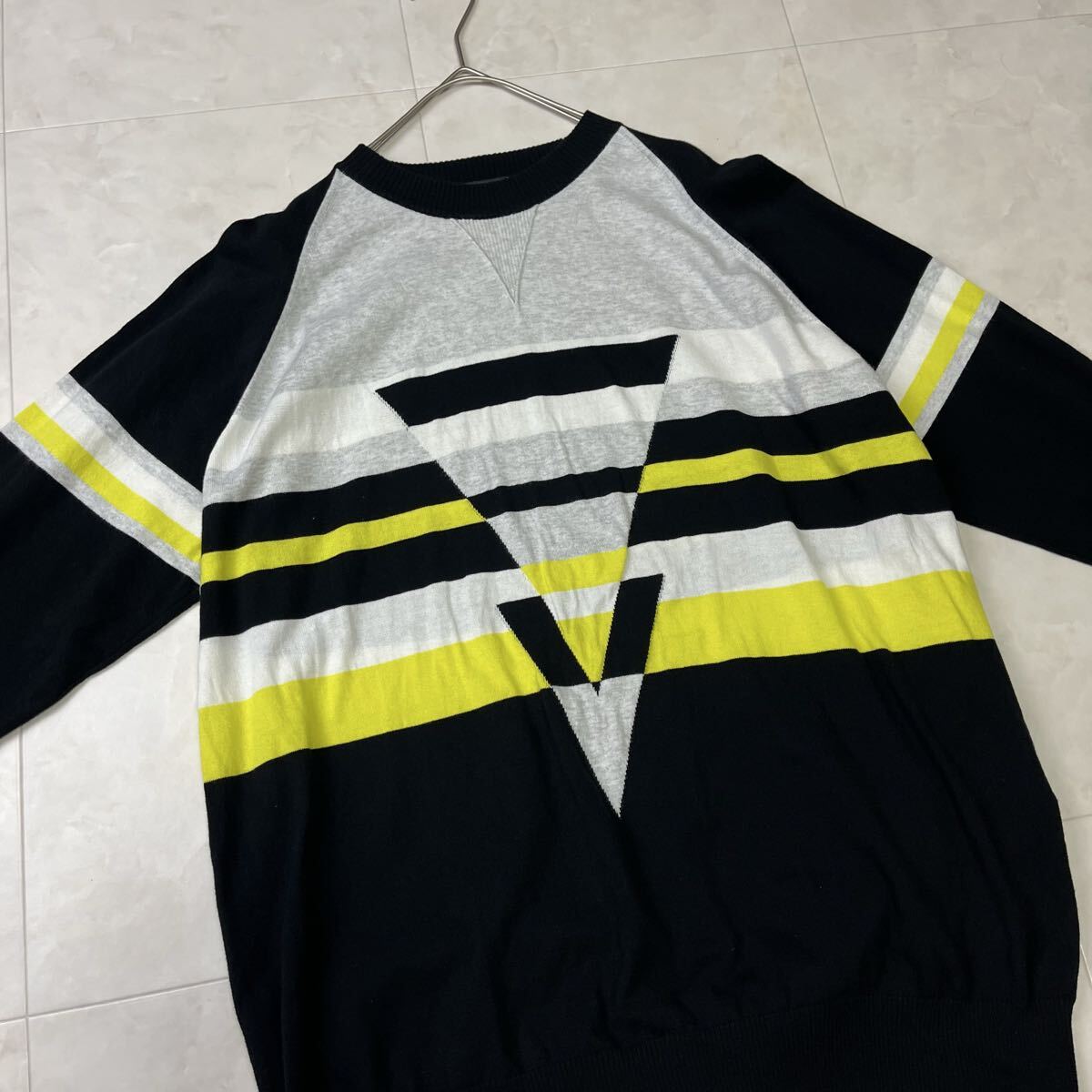 コットンニット セーター(長袖/幾何学ライン)