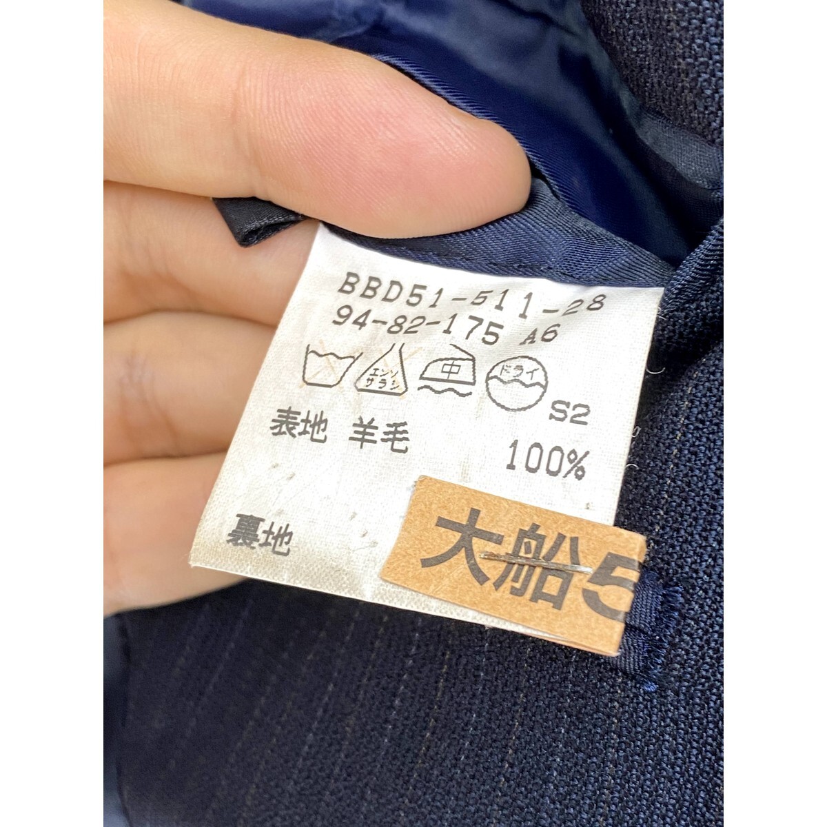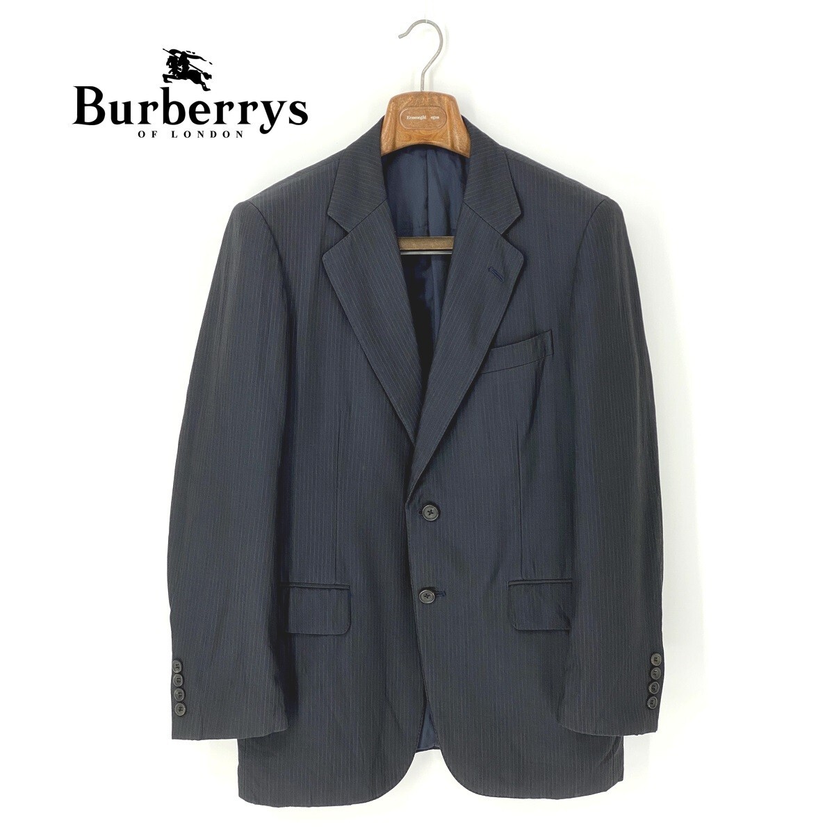 A6793/ビンテージ 90s 極美品 秋冬 総裏 BURBERRY バーバリー ウール ストライプ テーラード シングル2Bジャケット 175 A6 紺/メンズ