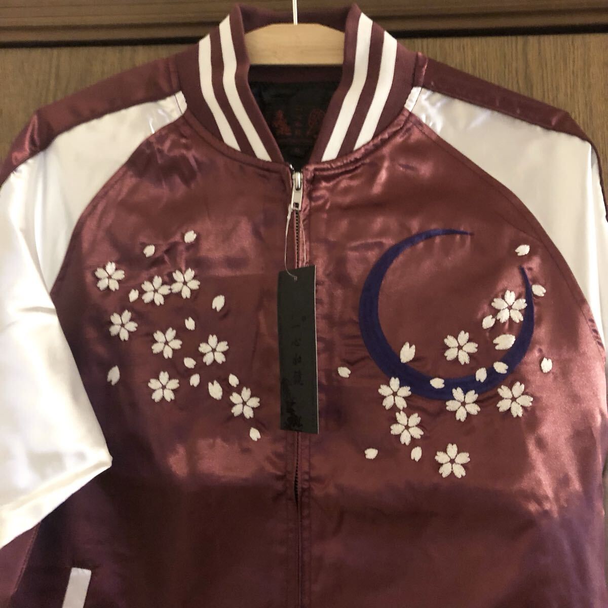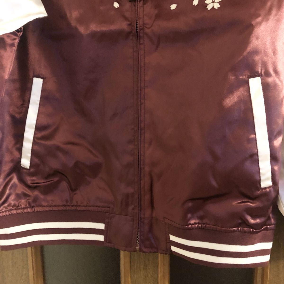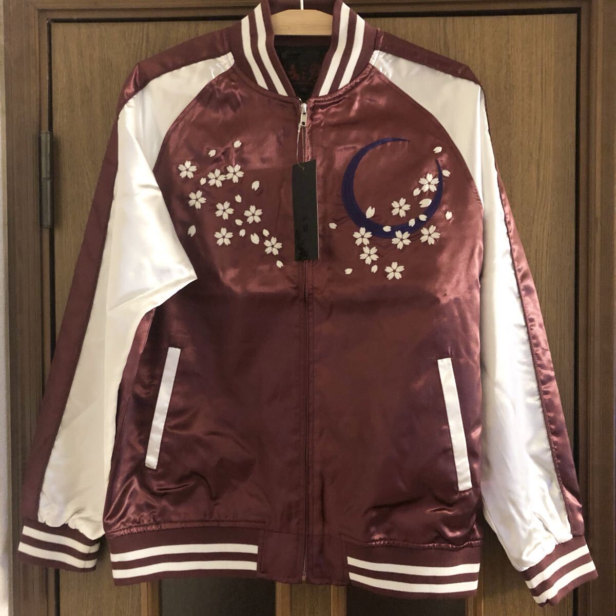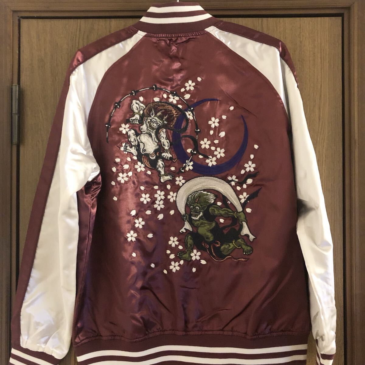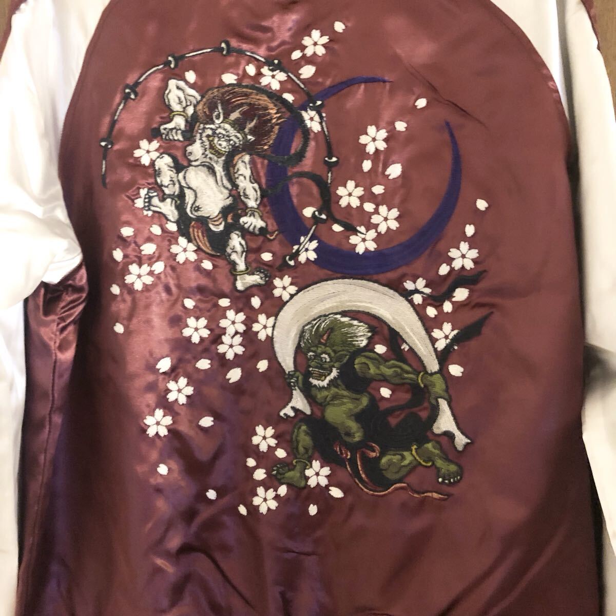 タグ付き新品 未使用 XL サテン 和柄 風神雷神 スカジャン ワイン