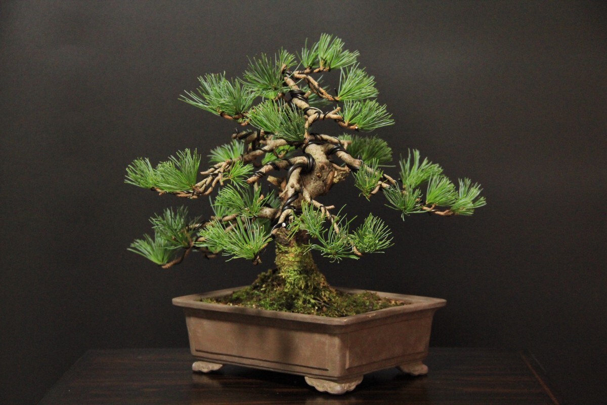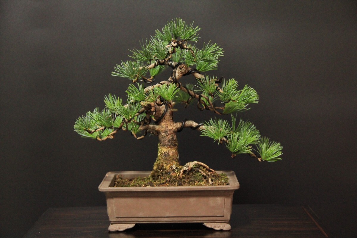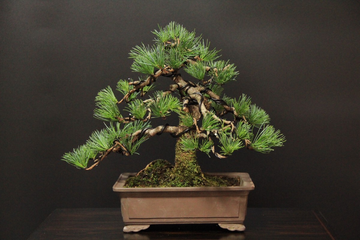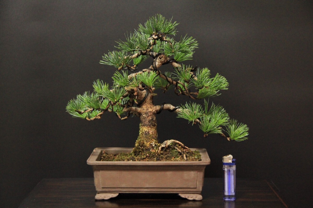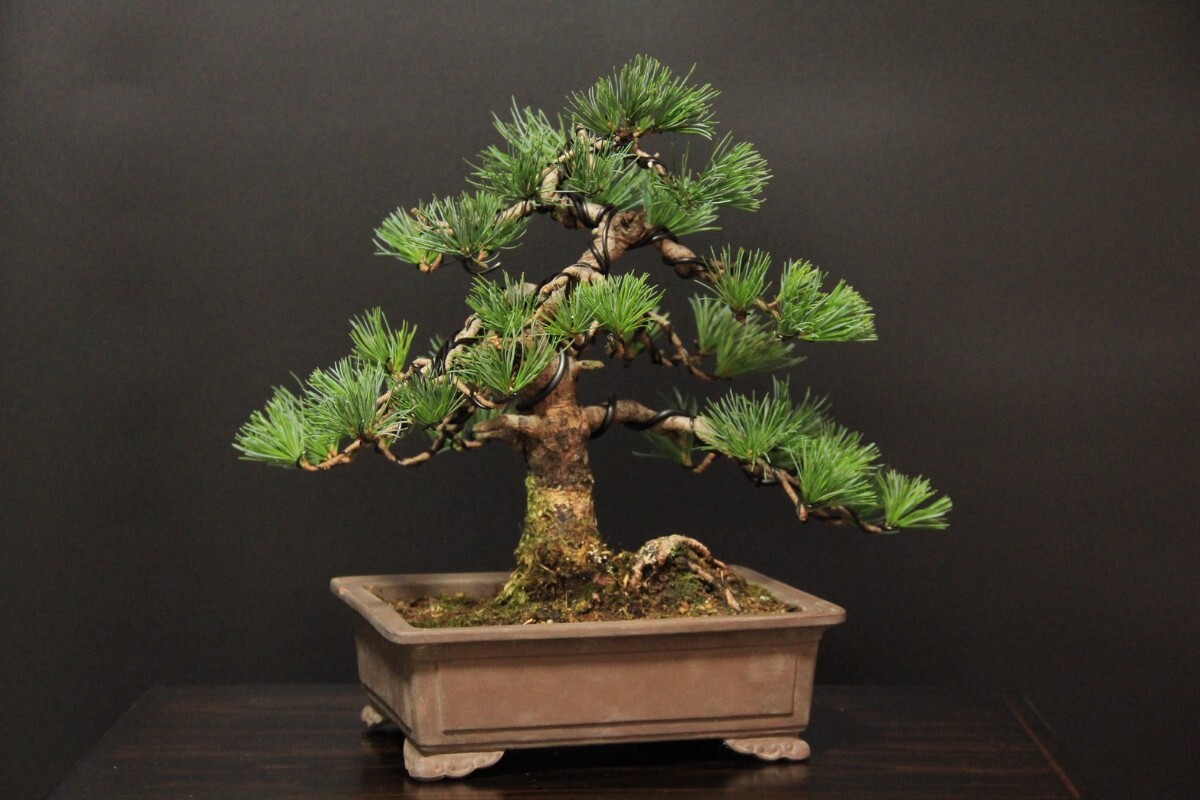 実生の吾妻五葉松です。鉢の縁にカケがございます。鉢幅約22㎝/樹高約26㎝/左右約33㎝。