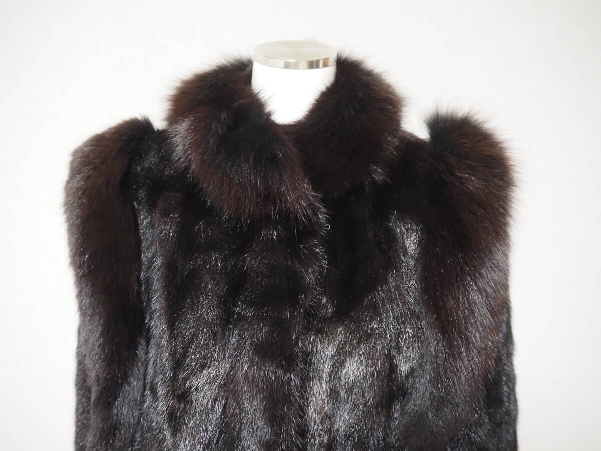 ■ダークミンク■ハーフコート■着丈74㎝■ドローコード付き■