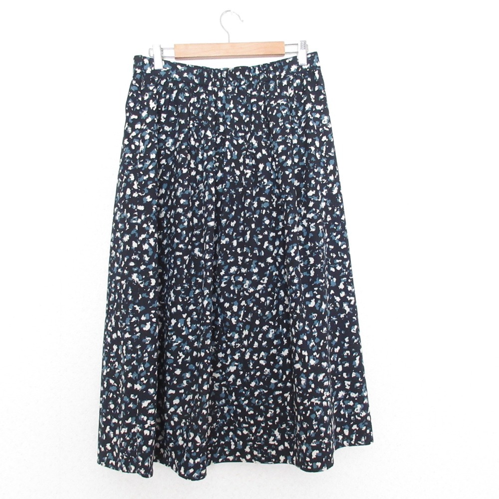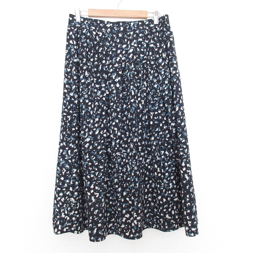 美品 J.PRESS ジェイプレス フラワープリント フレア ロングスカート 大きいサイズ T15 ネイビー
