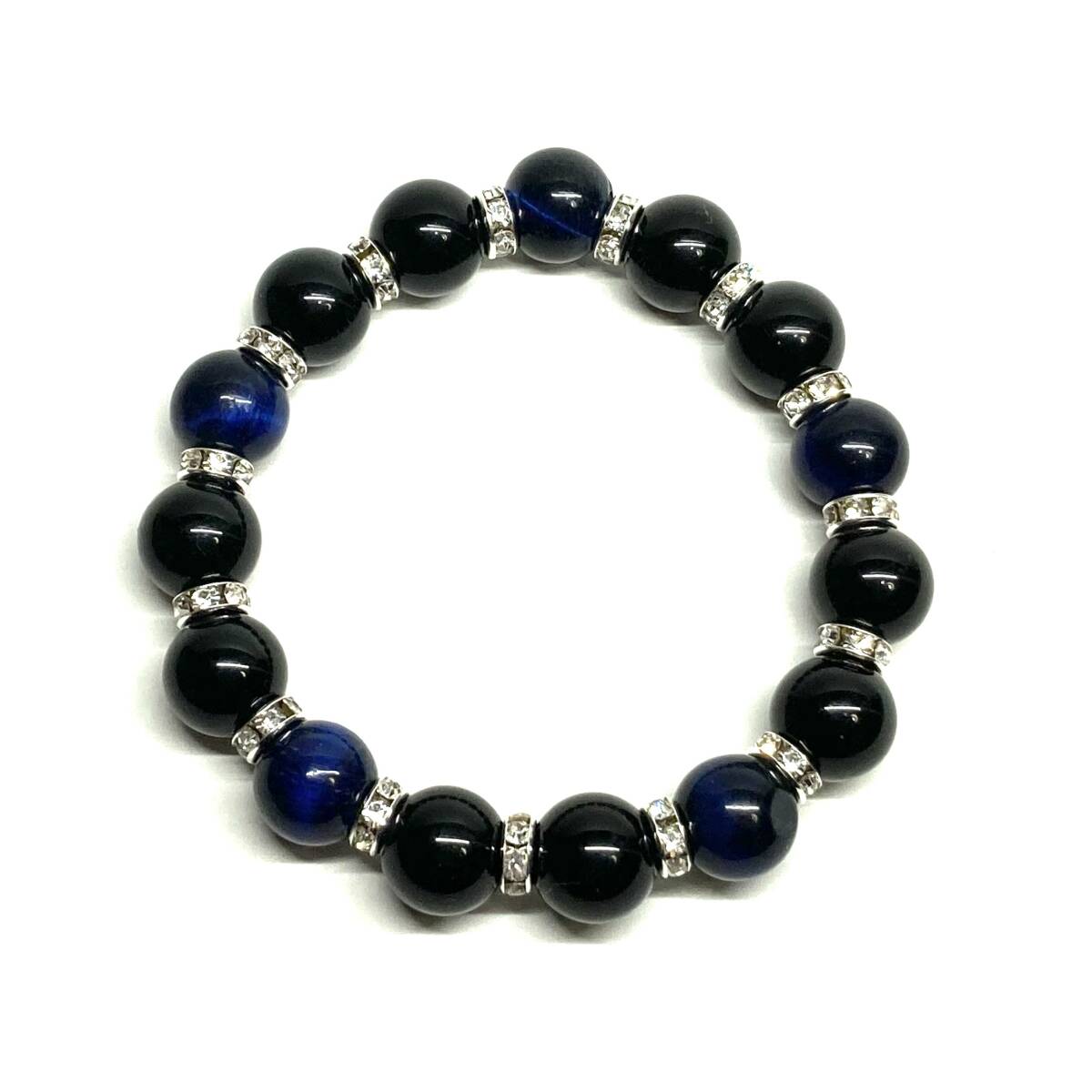 こちらは、モリオンとブルータイガーアイを組み合わせたパワーストーンブレスレットです。間にはロンデルを挟み高級感あるデザインに仕上げております。程よくインパクトがある12mm玉を使用して内周約18cmです。(サイズ変更の場合は取引ナビにてご連絡をお願いします。) 数に限りがございますので気になる方はお早めにどうぞ。
