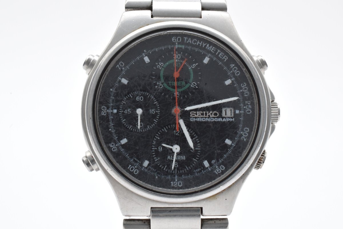 使用による傷や汚れございます。不動品。風防傷多数。リューズ固着(時刻合わせ不可)現状出品。(画像参照) |