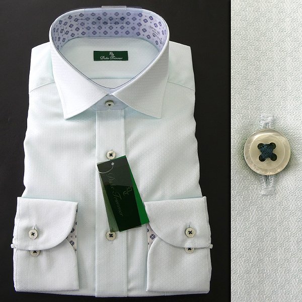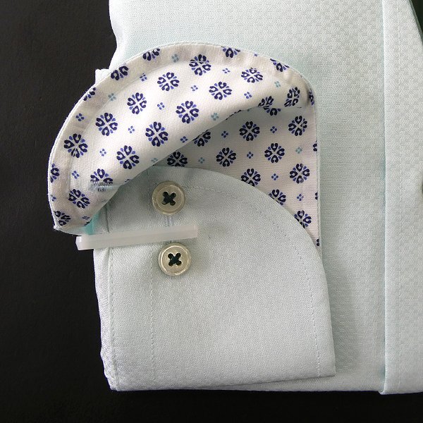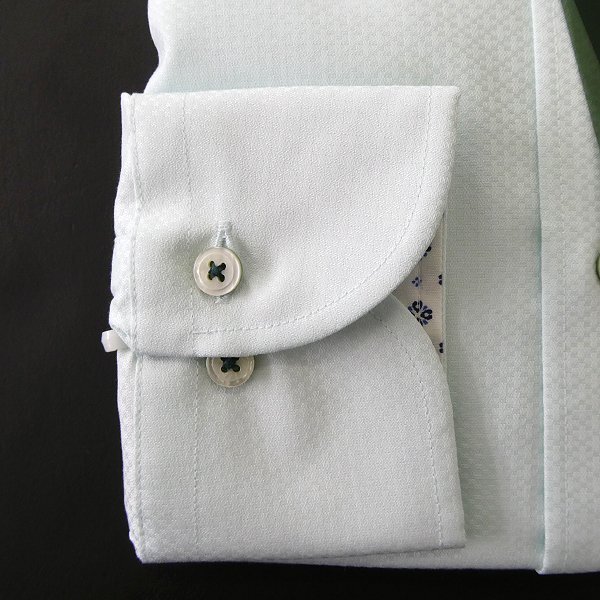 織り柄の表面感をもたせた生地で、程よい光沢に表情があるエレガンスなワイシャツ。 柔らかく肌触りと着心地の良い風合いに仕上げています。 衿裏・袖先裏に別地を使用したお洒落な一枚。 |