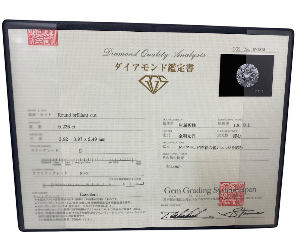 ダイヤモンドソーティング鑑定書2冊(Gem Grading System Japan)
