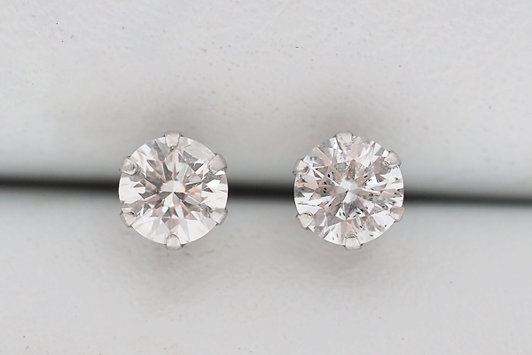 現物を撮影しておりますが天然のダイヤモンドのため左右での色味、大きさの違い、写真に写りきらないキズ等ある場合もございます。
