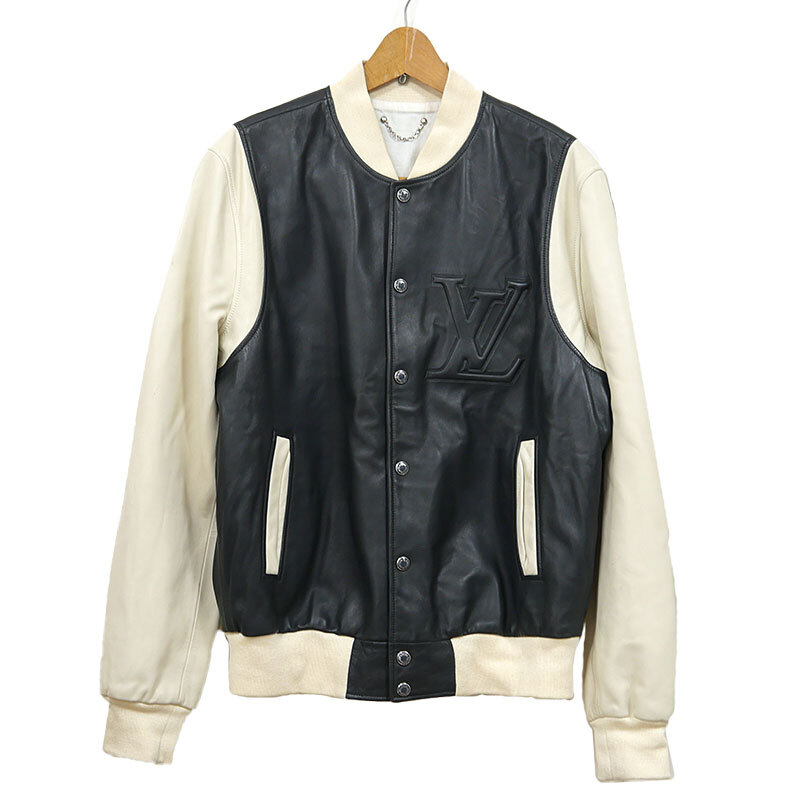 ・バイカラー、胸元にエンボス加工されたLVロゴマークがあしらわれています。袖部分のダメージが目立ちますが、破れなどはなく、着用自体は問題ありません。