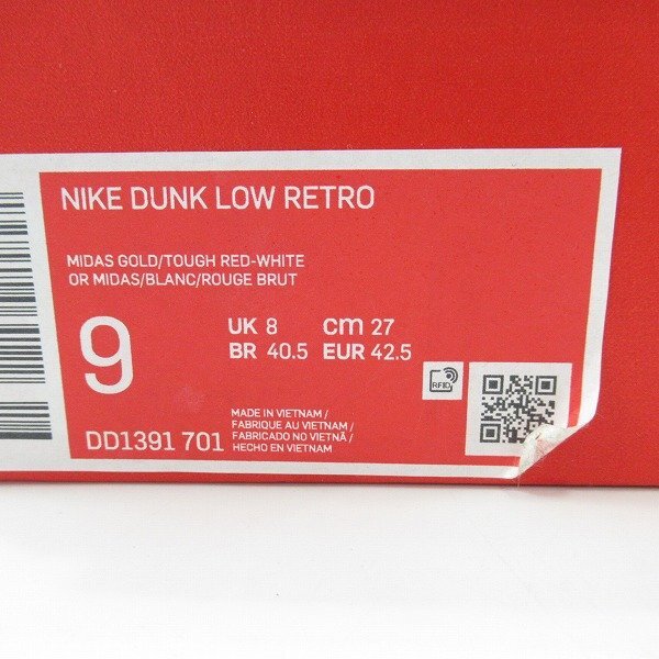 NIKE/ナイキ DUNK LOW RETRO/ダンク ロー レトロ ミダスゴールド DD1391-701/27 /080 | |||||||||||||||||||||||||