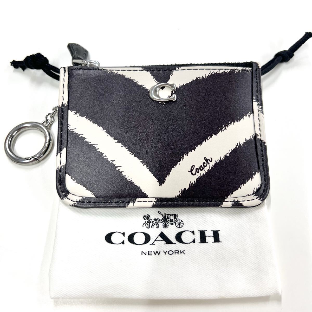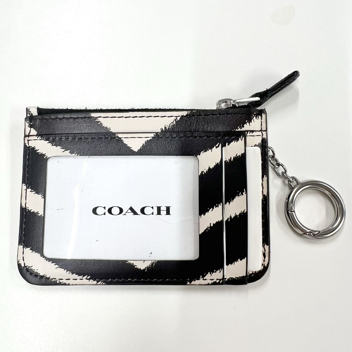 COACH コーチ ミニスキニー ID ケース ゼブラプリント パスケース カードケース 保存袋付き キーリング