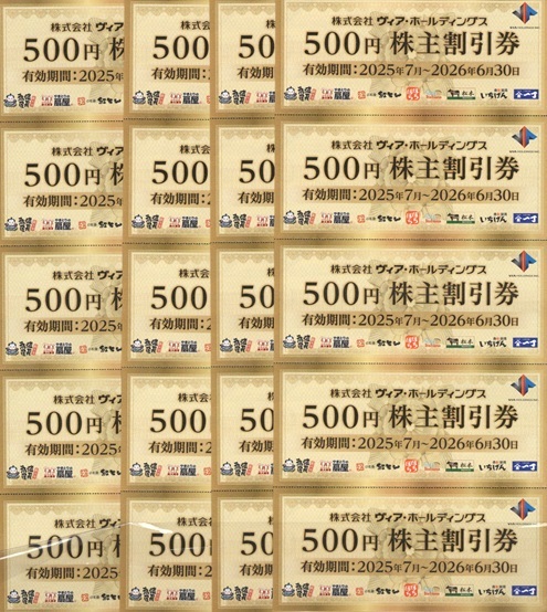 ヴィアホールディングス株主優待券500円券20枚売り。期限2026年6月30日。落札金額は20枚売りでの金額です。ノークレームノーリターンでお願いいたします。