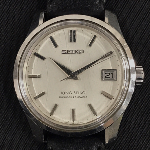 SEIKO キングセイコー KS デイト 手巻き 機械式 腕時計 4402-8000 メンズ ホワイト文字盤 メダリオン 社外ベルト |