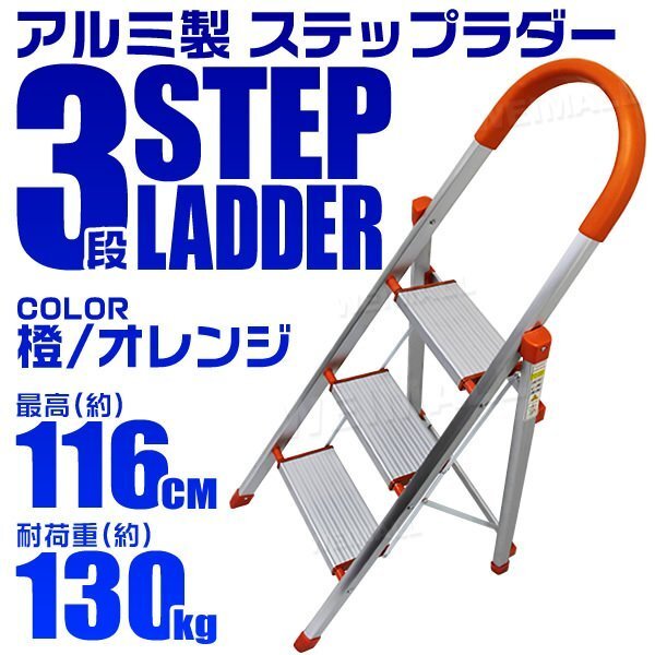 折り畳み式 アルミ製脚立 (踏み台 ステップ台 ステップラダー) 耐荷重(約):130kg 段数:3段タイプ カラー:橙/オレンジ 一家に一台あると便利! 照明器具の交換や、高い位置になる棚から物を取り出すときに 便利な折りたたみステップ台です。 持ち手がついて安心!最上段まで上れますよ♪ アルミ製なのでとっても軽い!女性でも余裕で持てる! サッと持ち運べて移動もラクラク! 未使用時はコンパクトに折りたたみ、省スペースに収納できます。 ・高い所の窓拭きに ・食器棚の上棚の収納に ・電球や電灯交換に ・撮影スタンド用に ・エアコン掃除に ・車の洗車に ・壁に時計など飾るときに ・愛の告白に(?) などなど いろんなシーンで大活躍です! ぜひ使ってみてください♪ |