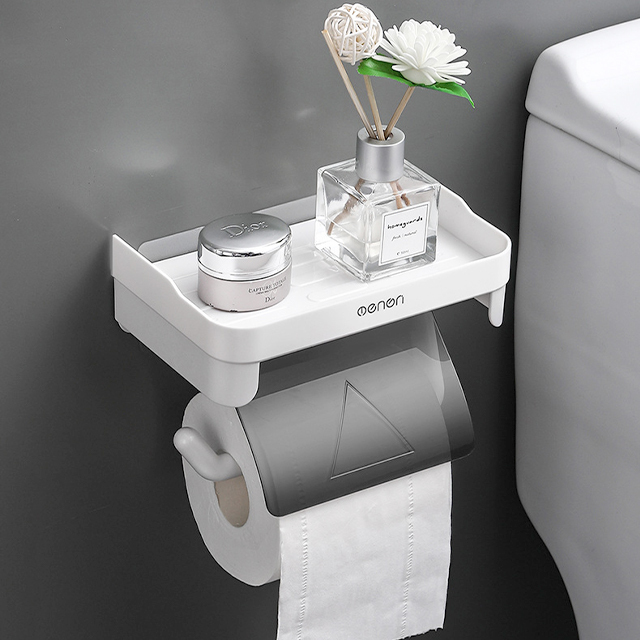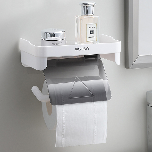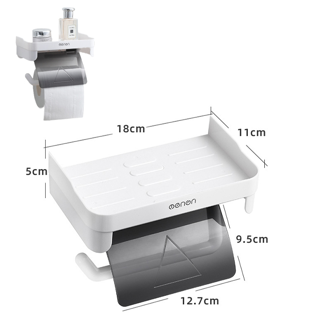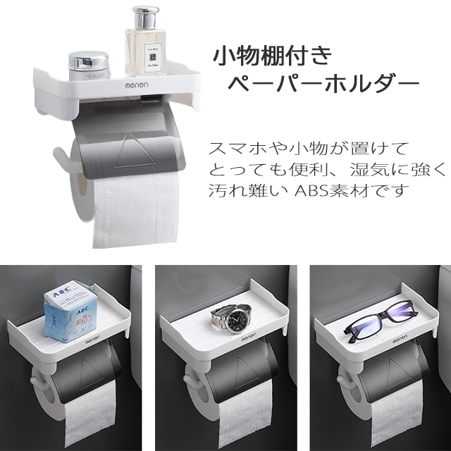 トイレット ペーパーホルダー 紙巻き器 簡単取付 棚付き ビス止め不要
