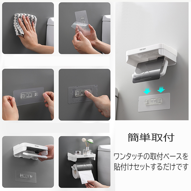 壁に穴を空けずに ワンタッチ取付可能なペーパーホルダー