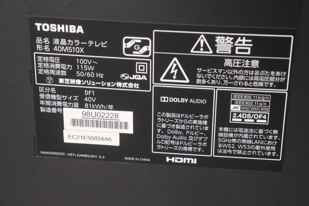 YKB/T18 TOSHIBA 東芝 REGZA 40M510X 40型 液晶 テレビ 2017年製 地上デジタル放送視聴可能 直接引き取り歓迎 | |||