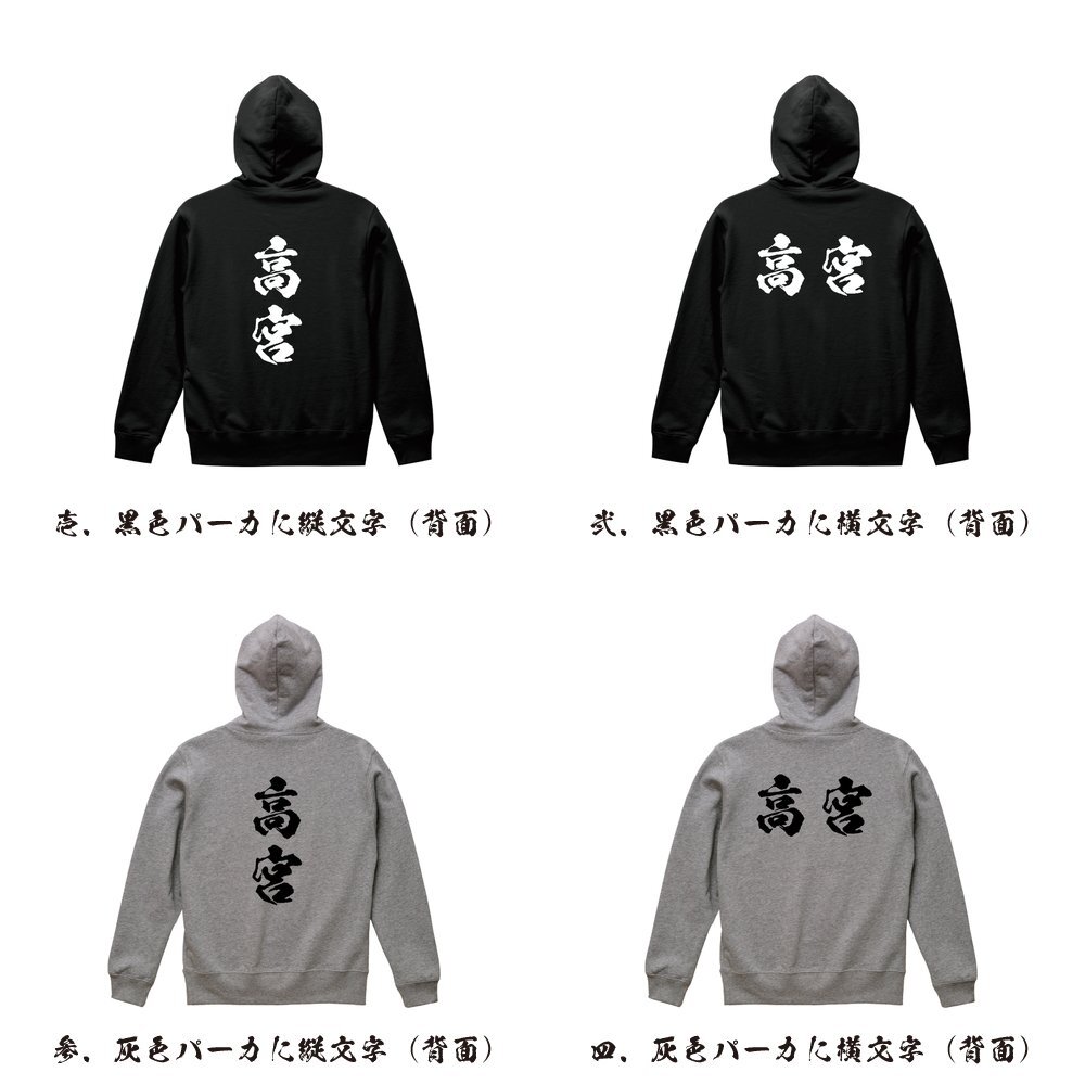 高宮 書道家が書く デザイン フルジップ パーカ 【 名字 】 メンズ レディース キッズ
