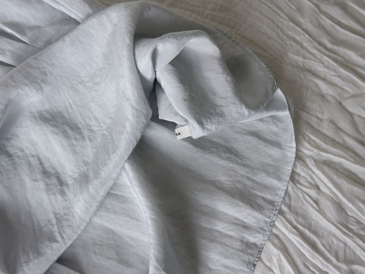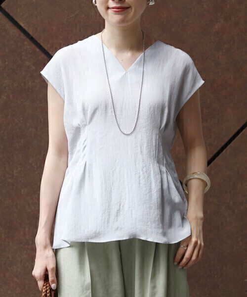 粗めのワッシャー加工を施した素材のニュアンスカラーブラウス。ウエストにタックが入ったデザインで程よくすっきり見えながらもシンプルに合わせやすいブラウスです。 ヴィンテージ加工でラフな印象に仕上げているのでカジュアルな着こなしにプラスするのもおすすめです。