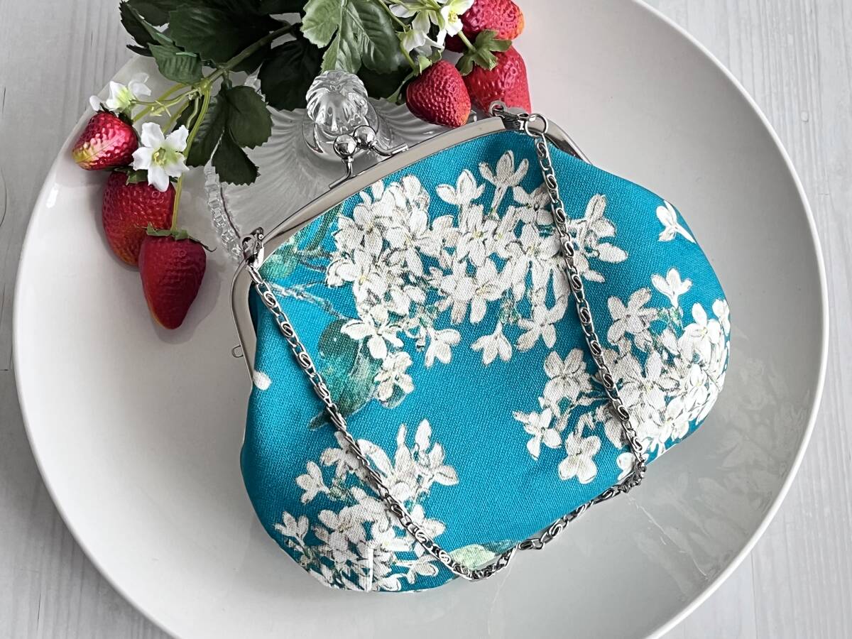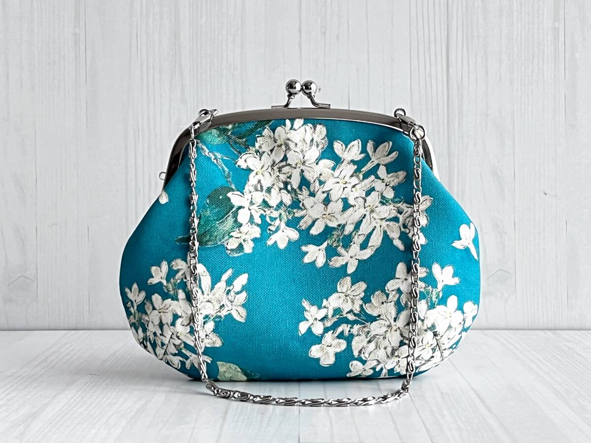 シルバーの13.5cmがま口を使用した2way がま口バッグになります。
