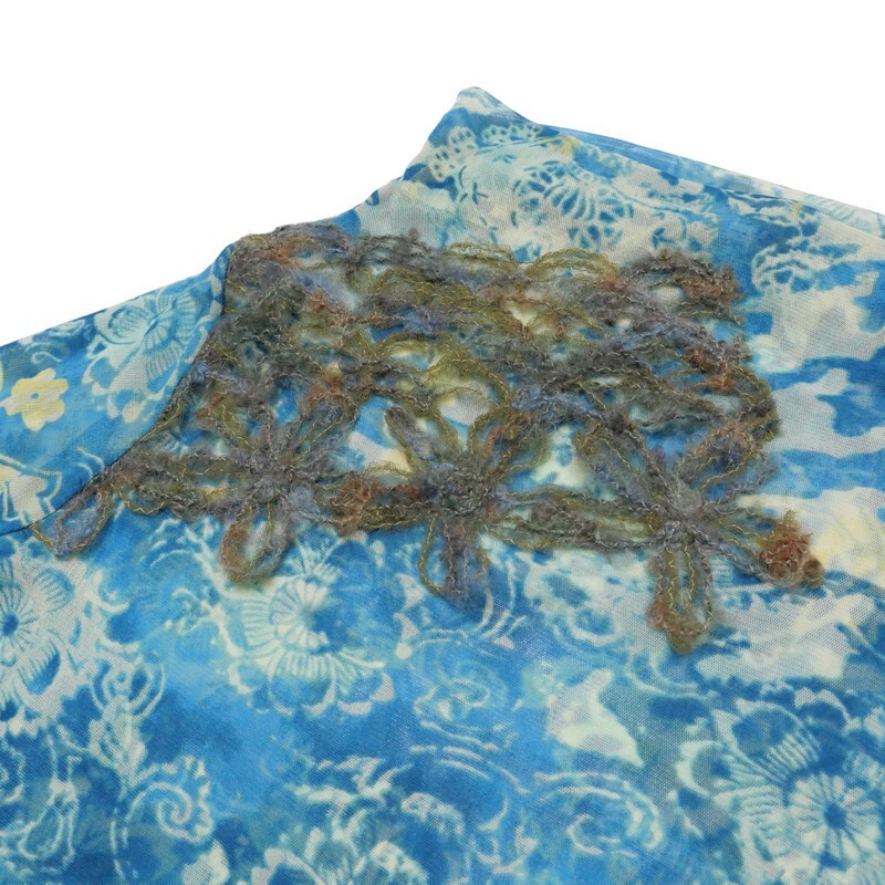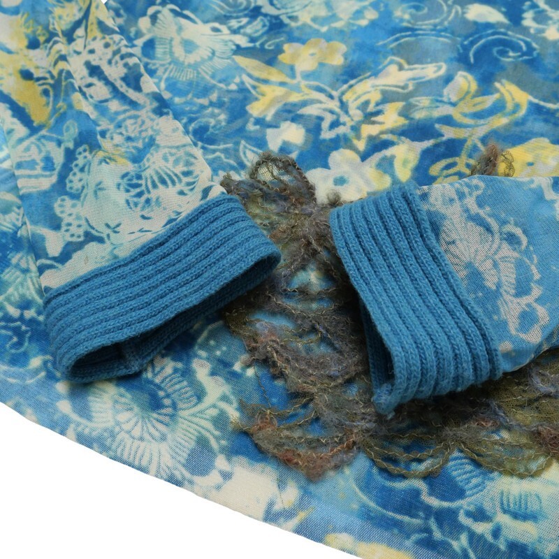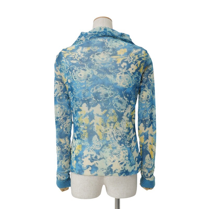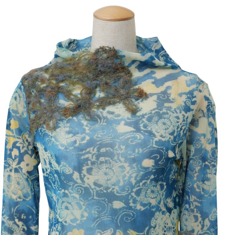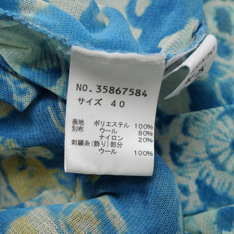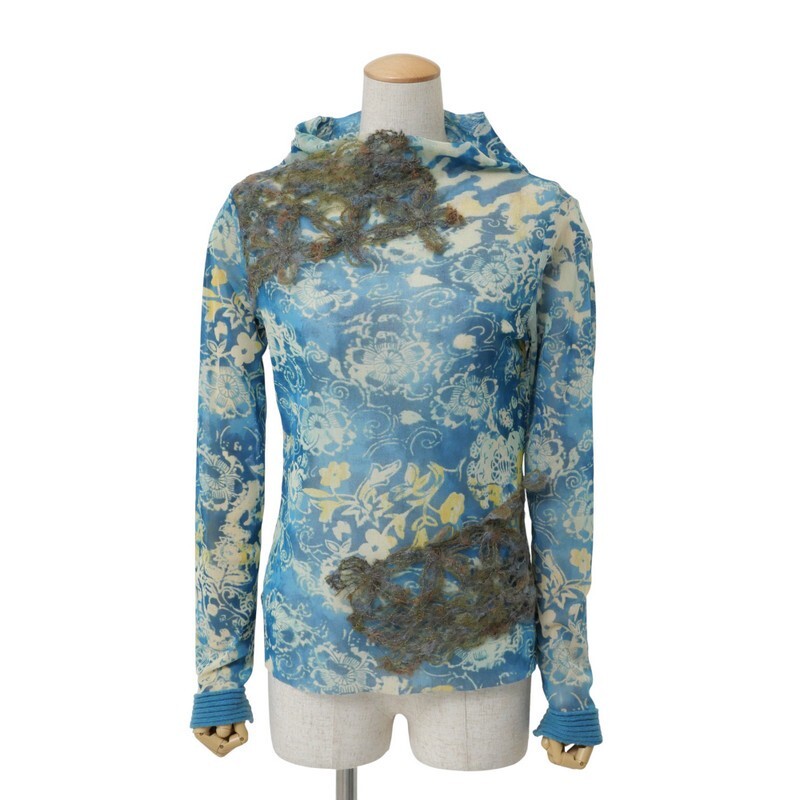 TJ4743=イタリア製*クラウディアフェラーリオ*メッシュ*透け感*フラワー柄/刺繍*袖口ニット*ハイネック*プルオーバー*カットソー*サイズ40 | |||