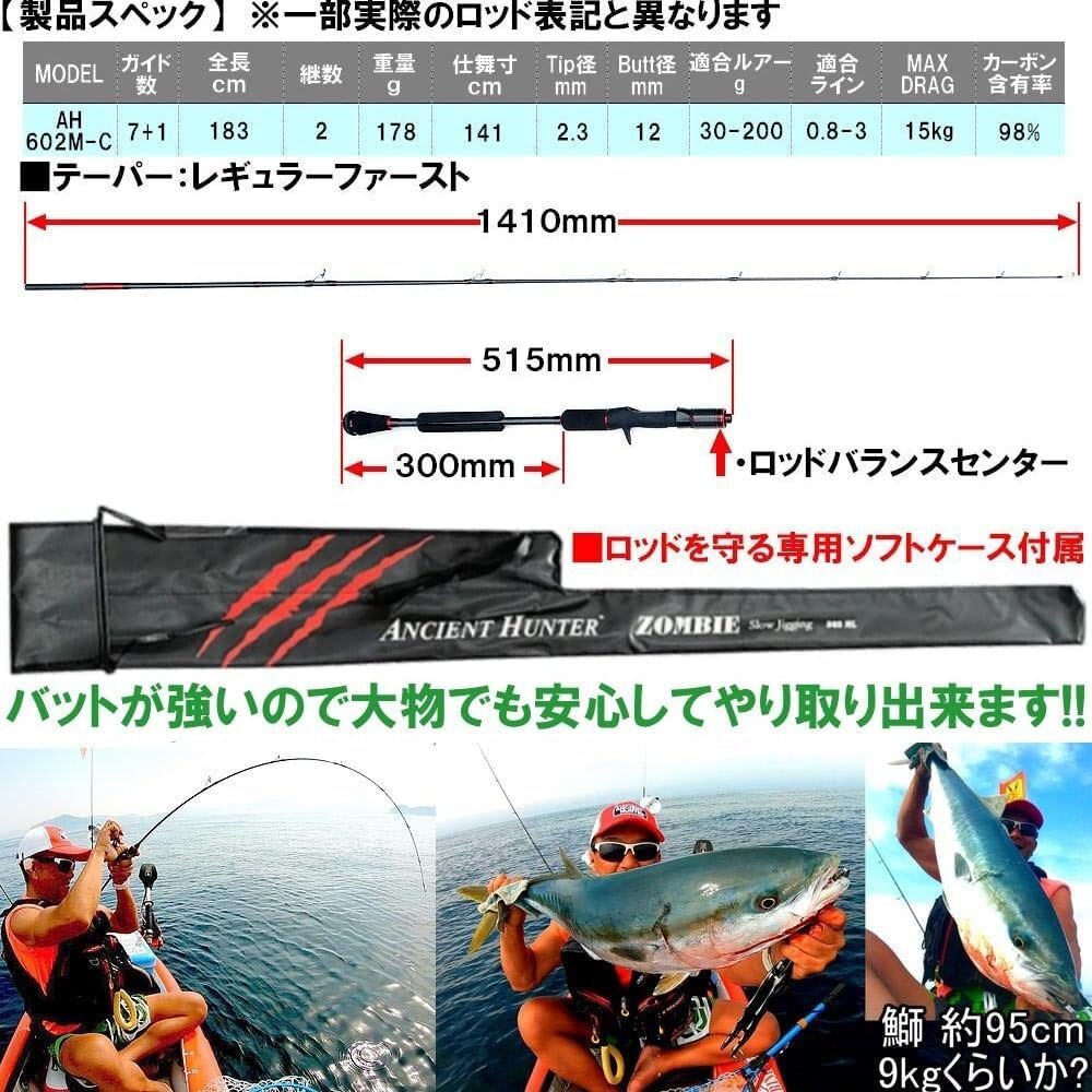 オフショア ジギングロッド 1.83m ZOMBIE 178g ベイトリール専用 36+40Tカーボン SICガイド 【 AncientHunter X ジギンガーZ 】