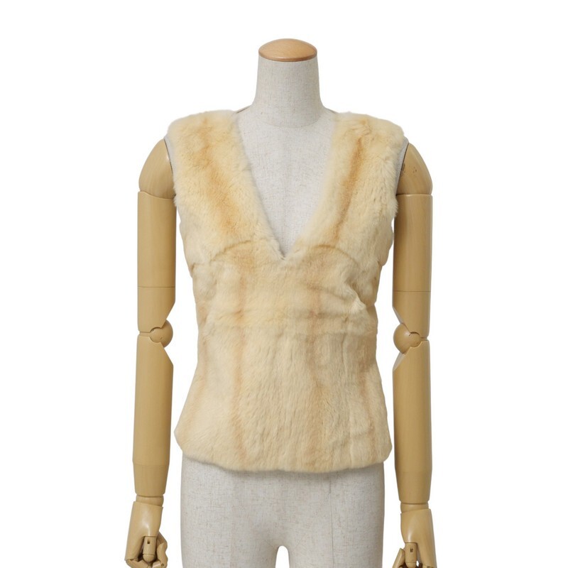GS0389=イタリア製*PRADA プラダ*シベリアンミンク*異素材切替*ファー×カシミヤ混*ニットベスト*ジレ*プルオーバー*サイズ38*アイボリー系 | |||