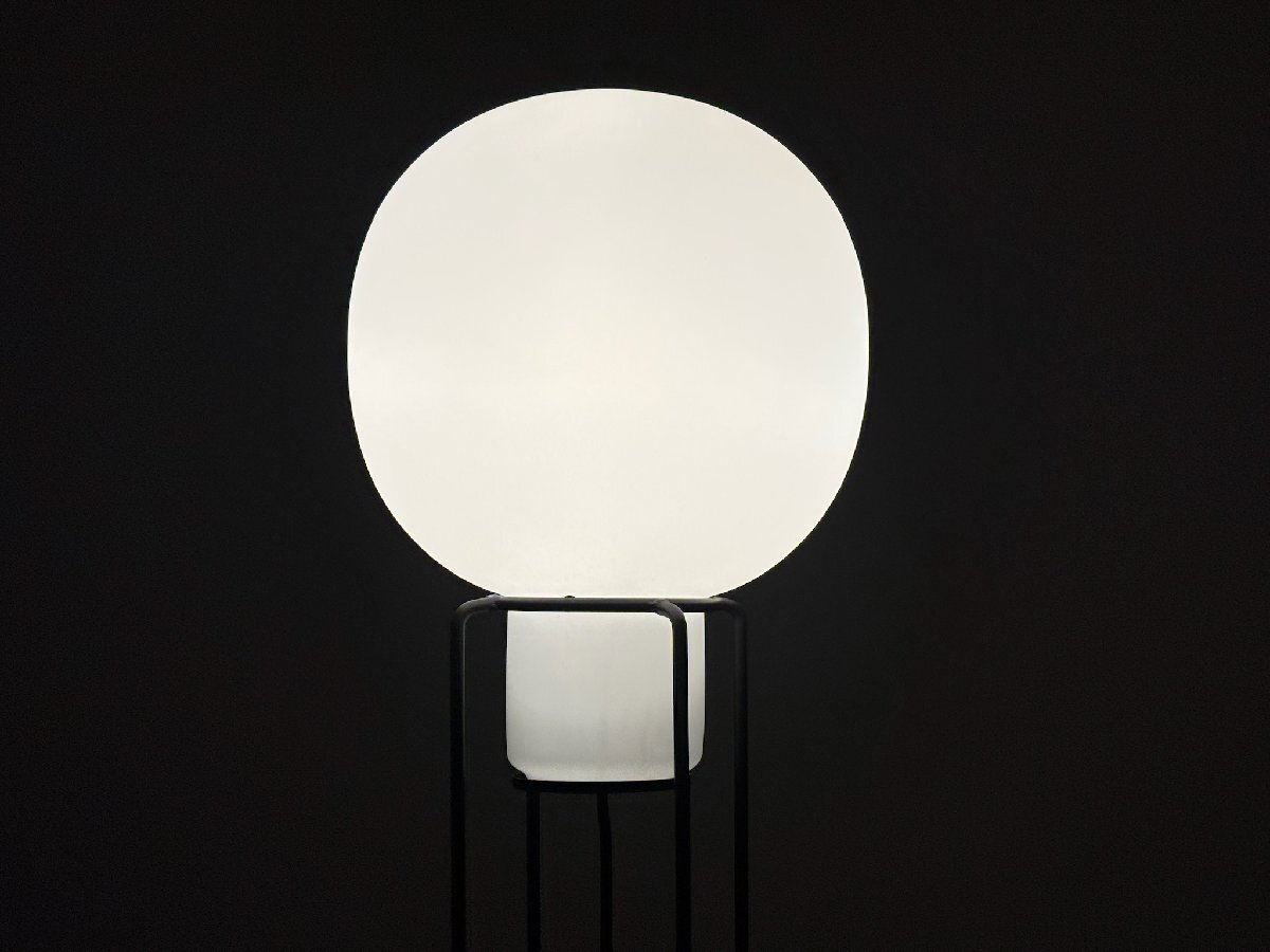 バルムでは、昼間と夜間で見える照明の佇まいをコンロトールし、ほっそりとした抜け感のあるスチールフレームが周囲に直線的なラインの装飾で溶け込みつつ、夜間ではフレームがブラックアウトし、球体状のセードだけが浮遊して漂うような印象を演出、乳白色のガラスセードに極めたデザインフォルムの細やかな造形を全面的に讃える構成となっています。